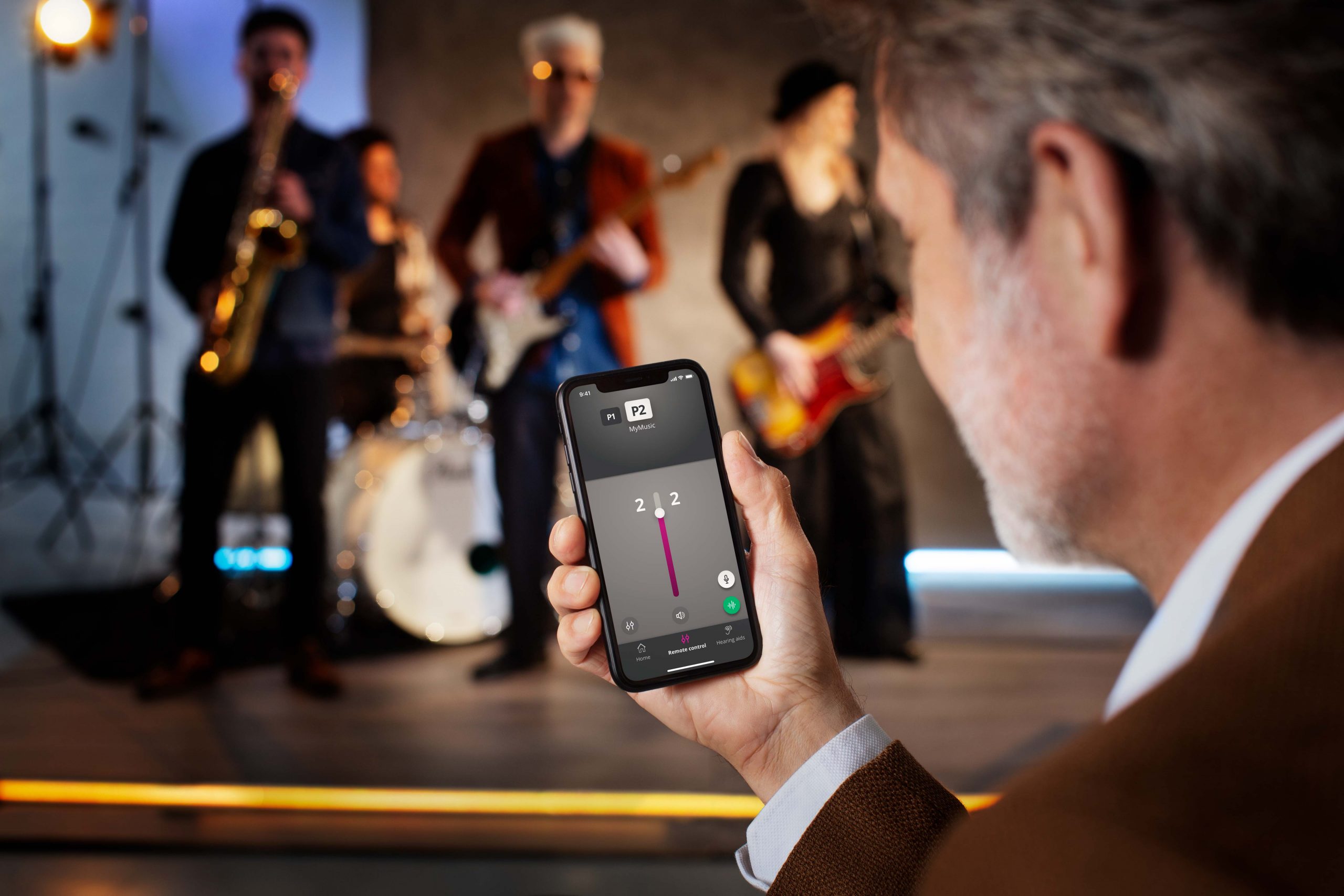 MyMusicを含む補聴器プログラムの設定は補聴器販売店、クリニックなどで、補聴器専門家による設定が必要だ。補聴器プログラムは、補聴器本体、リモートコントロール、スマートフォンの「オーティコンONアプリ」などの併用で、必要なタイミングで切り替えることができる。