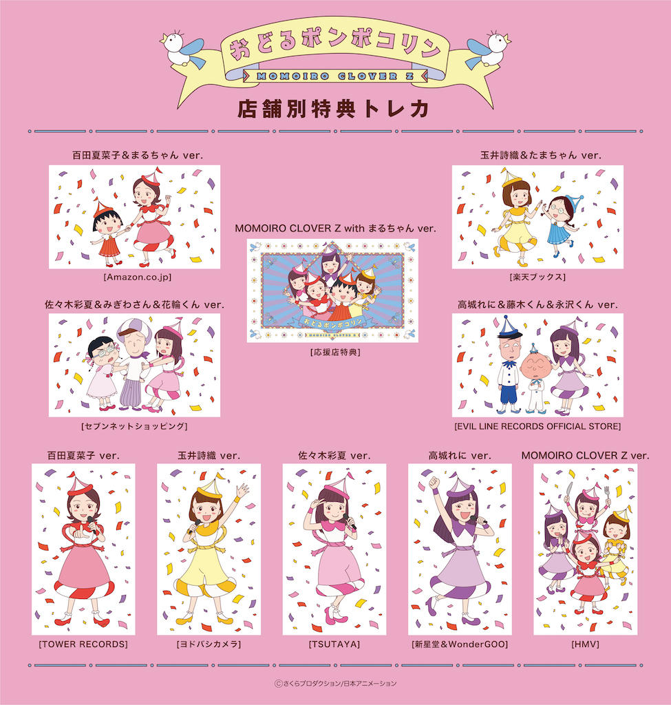 さらには、初回製造分に「ももクロ×ちびまる子ちゃん」ステッカーシートが封入と、隅から隅までが「ももクロ×ちびまる子ちゃん」コラボ仕様となっている。