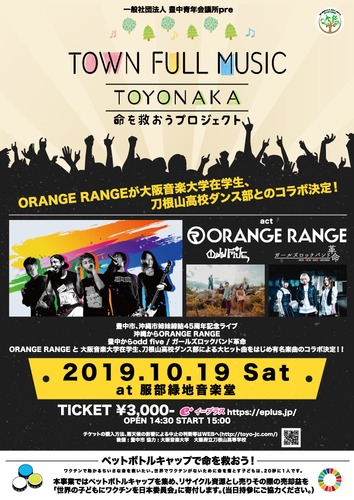 10月19日、大阪・豊中市にある服部緑地野外音楽堂にて『Town Full Music Toyonaka』が開催される。本イベントは豊中市にある一般社団法人 豊中青年会議所が主催の下、今回が初の開催となる。出演アーティストはORANGE RANGEを中心に、地元・豊中出身のバンドodd five、ガールズロックバンド革命の2組参加。さらに、同市にある大阪音楽大学、刀根山高等学校の学生チームがORANGE RANGEとコラボレーションするなど、地元を盛り上げるステージが展開される。地元を盛り上げるイベントでなぜ沖縄出身のORANGE RANGEが出演するのか。それは大阪・豊中市と沖縄・沖縄市が兄弟都市提携をしていることが一番のキッカケだという。今回、ORANGE RANGEからYOH(Ba)、豊中青年会議所理事長・横田好秀氏、そして大阪音楽大学の学生・松田マリアさん(大学3年)を交えて対談を実施。イベント開催のきっかけやORANGE RANGE出演のオファーなどについて話を聞いてみた。