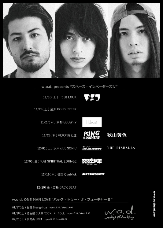 また、アルバムリリースに伴なって開催されるw.o.d.初の全国対バンツアー『スペース・インベーダーズⅣ』のゲストバンド第二弾が発表された。地元・神戸公演には、KING BROTEHRSと秋山黄色、京都公演にはHaubi、水戸公演にはTHE PINBALLSとThe Cheserasera、福岡公演にはBAN’S ENCOUNTERの出演が決定している。チケットは各種プレイガイドにて発売中。