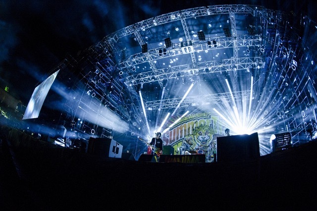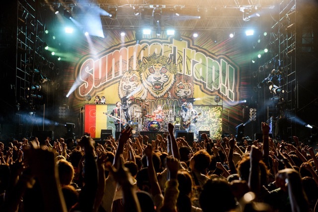 7月17日にリリースした5th シングル「Summer Trap!!」を引っさげて開催された『WANIMA Summer Trap!! Release Party』。会場となったナガシマスパーランド芝生広場は、WANIMAらしさ全開の熱いお祭り空間になった。