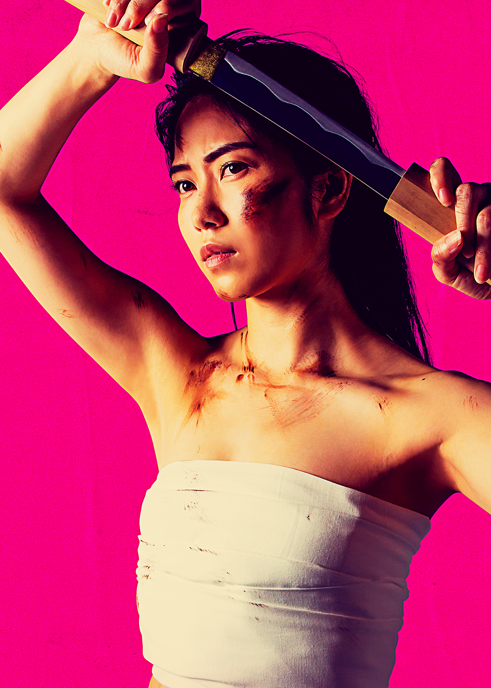 出演が決定したときは正直驚きもありましたが、舞台で本格的な演技に挑戦するのは初めてなので、すごく楽しみな気持ちでいっぱいです! 撮影では重いコートをきて、サングラスもつけてみたり……いつもとは全く違う自分に出会っているような新鮮な気持ちでした。『仁義なき戦い』というタイトルの通り、この舞台も“戦い”。