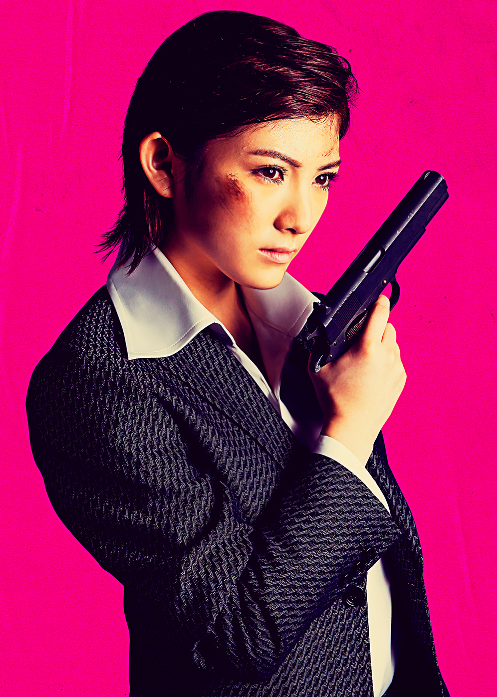 主役の広能昌三役をWキャストでつとめるのは横山由依(AKB48)と、岡田奈々(AKB48/STU48)。クールな表情で日本刀を握り、サラシ姿を披露した横山は「男役をやらせていただくのは初めてなので、普段の自分とは違う髪型や衣裳に気持ちが高ぶりました! 舞台はまさに、“自分自身”との“仁義なき戦い”の場。一人ひとりがお芝居や自分自身としっかり戦って、『仁義なき戦い』の世界を皆さんにお届けしたい」と気合い十分。鋭い眼光で銃を握り、スーツ姿で次々にポーズを決めた岡田奈々(AKB48/STU48)は、「演じることや舞台が好きなので、今作への出演が決まった時は素直に嬉しかったです! こういった格好をさせていただくのも初めてで、当然ながら銃をもったのも初めて(笑)。まだ不安な部分もありますが、稽古を重ねながら成長していき、たくさんの方に観ていただきたいです」と語る。