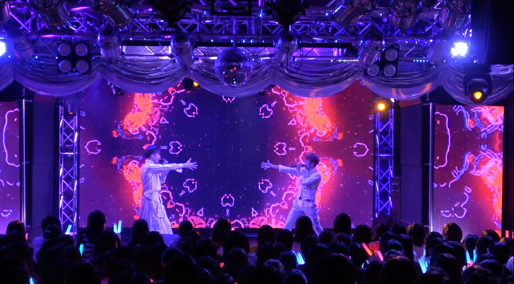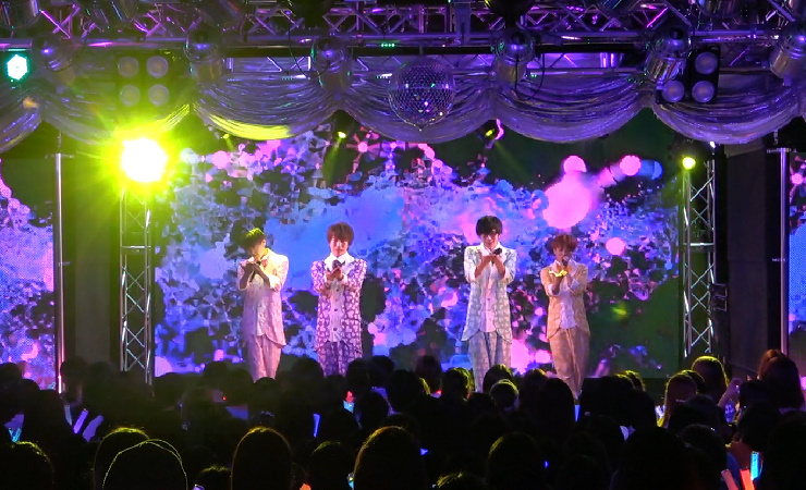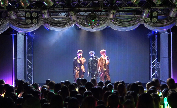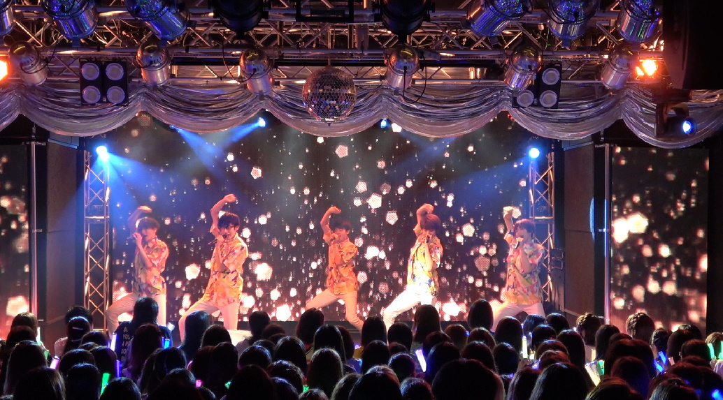 また、トラフィックライト。の「Traffic Jam」カバーでは、あづ、なぎ、ようたがスリリングに歌をかけ合う姿、ダイナミックなダンスパートでも目を引いたり。たいががとみたけの薄ピンク衣装を、ぱっちが白服のイエロー衣装を、なるきが二番煎じのエメラルドグリーン衣装を、祐矢がノックソのパープル衣装を着て、むすめん。の「Second Step」を最強かわいくパフォーマンスしたり。そのなりきりっぷりに、オーディエンスのテンションも上がらないわけがない。