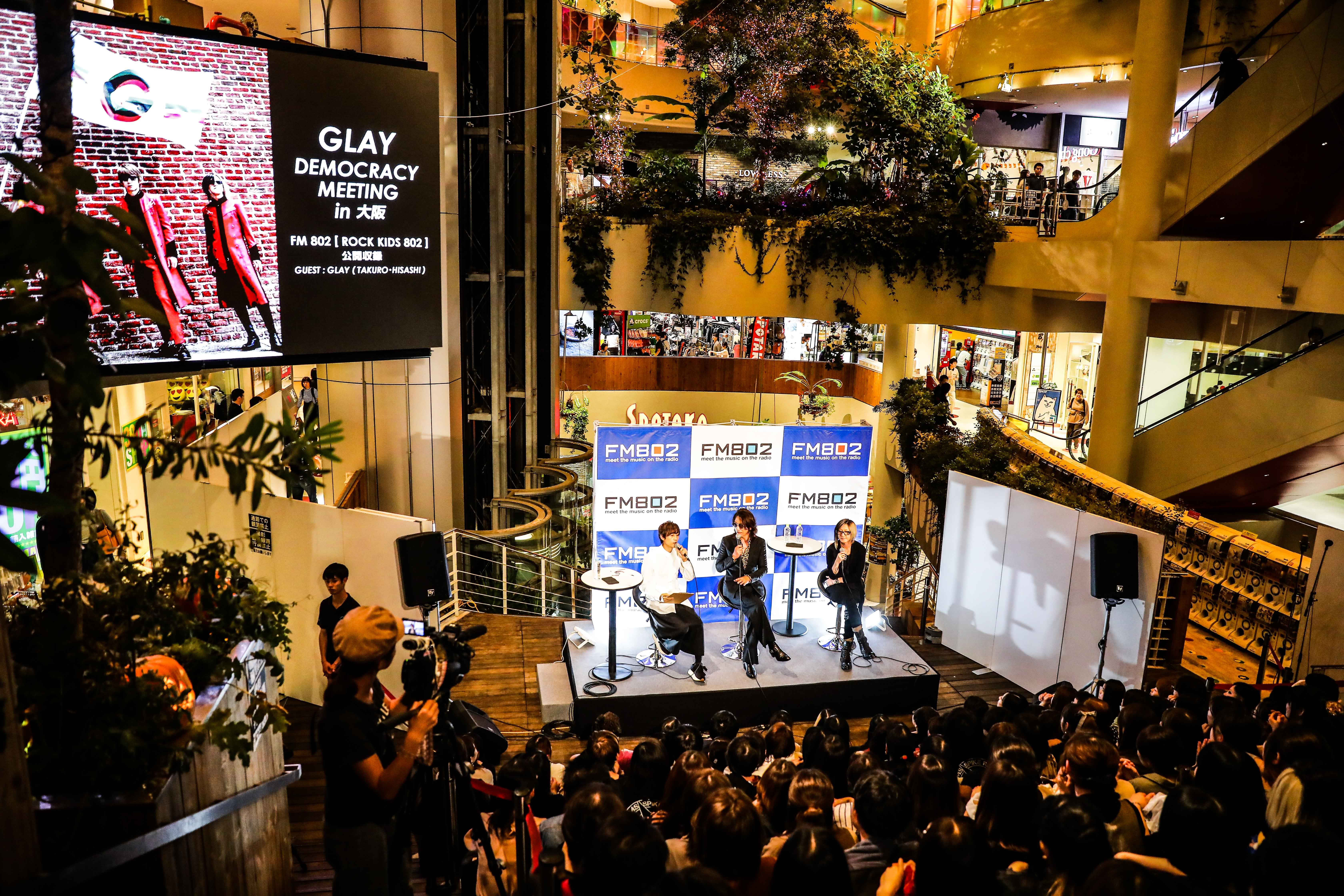 イベントではアルバムタイトルに懸けて、リスナーから公約を募集。個性ある内容に、2人は真剣な表情で答える一幕も。さらに、GLAYがデビュー25周年で掲げた公約についてもトークを展開。そこで「大阪のみなさんだけに向けた公約を。JIROがFM802の番組DJも担当している、これまでのお礼を生で伝えたい」と、先述の同局主催のロック大忘年会『FM802 RADIO CRAZY』への出演をサプライズ告知。彼らにとって、年内最後のライブになるらしく「僕らにとっても大忘年会になる」(TAKURO)、「これを機にリーダーにはフェス好きになってほしい」(HISASHI)と、イベントへの意気込みを語った。