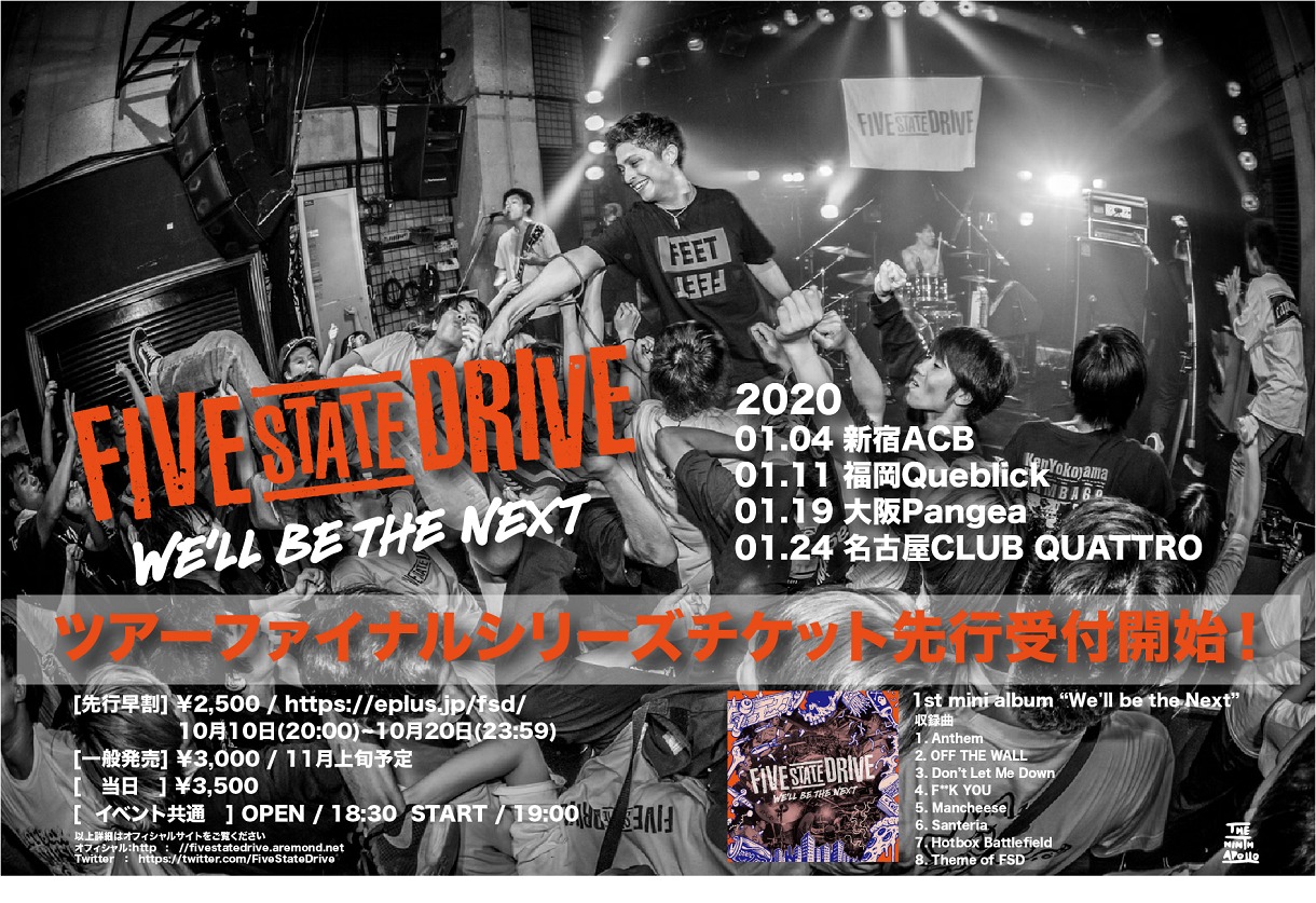 Five State Driveがミニアルバム『We'll be the Next』を引っさげて現在行なっているツアー『WE’LL BE THE NEXT TOUR 2019』ファイナルシリーズの詳細が発表された。