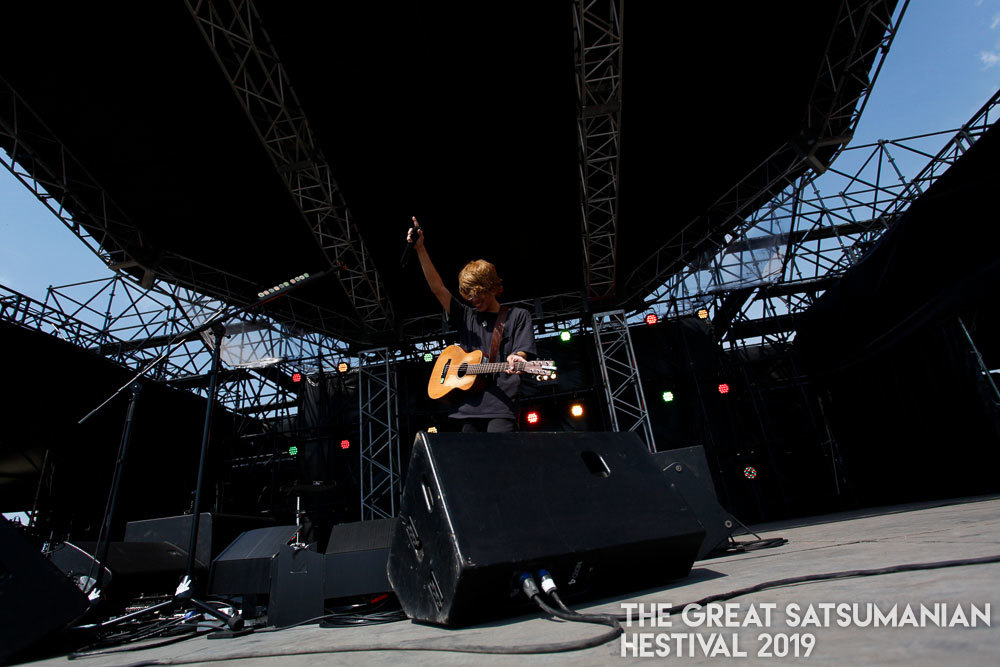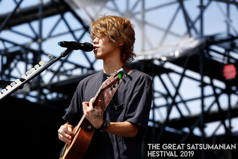 優しくアコースティックギターをつま弾き、ロマンチックな物語を描くように「一番星」を歌うと、MCでは「こんな桜島のふもとでできる機会もないので、思いっきり楽しんでいきたいと思います」とゆるい口調で語りかけた。