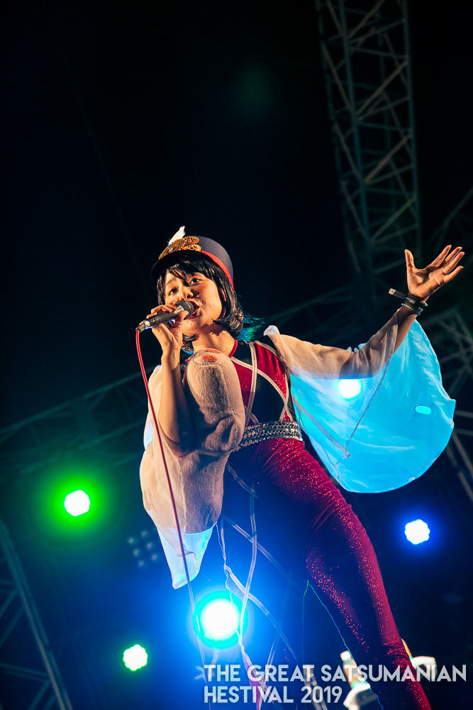 歌い上げるバラード「Follow」で音楽的なレンジの広さも証明しつつ、「こんなしっとりしたフェスで終わらせることはできないんですよ」という敬語のMCもいい引っ掛かりを残す。「来年はあっち(薩摩か大隅)で会おうぜ!」と、分厚いアンサンブルで地底を揺るがすような演奏を見せ、地球から姿を消すように暗転したラスト「Network System」の演出も見事だった。ステージの大きさに関係なく当然のようにベストを尽くす。果たして来年は? 気になるところだ。