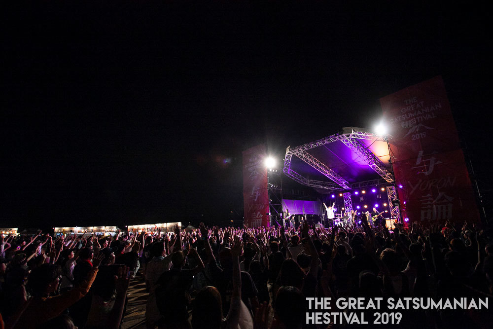 2日間に渡る『THE GREAT SATSUMANIAN HESTIVAL 2019』もいよいよ大詰め。サンボマスター・山口が「勝手に死んでんじゃねえ!」と、力技で再会を約束させた後、与論ステージではクロージングアクトの城南海がリハで「まだ帰らないで!」と茶目っ気たっぷりにアピールしていた。