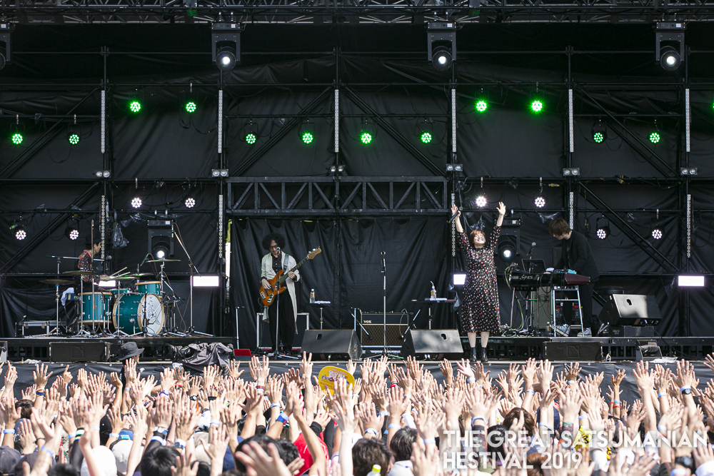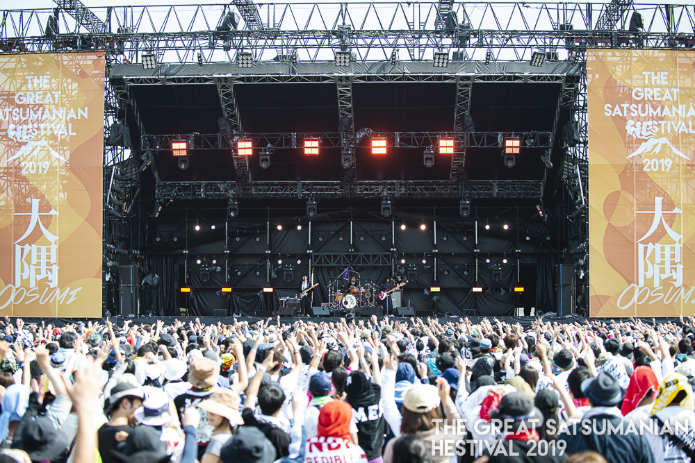 2日目も快晴に恵まれた『THE GREAT SATSUMANIAN HESTIVAL 2019』。間もなく始まる薩摩・大隈エリアの上空を鳶が旋回している。ああ、自分は東京ではない場所にいるんだなと実感する。