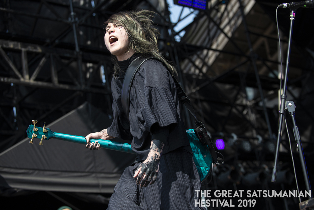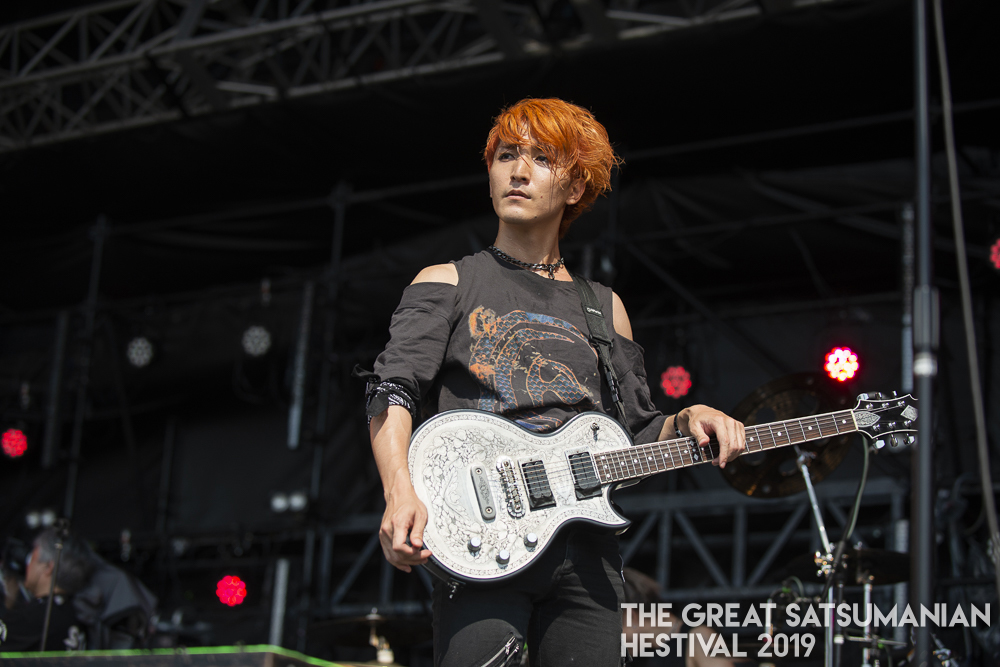 途中、演奏をいったん落ち着かせて、彼らの前に薩摩ステージに立っていたきゃりーぱみゅぱみゅを引き合いに出して、「俺たちはファッションモンスターじゃなくて、ガチなモンスターだから」なんて笑わせてたけど、それ、ただの冗談じゃなくて本気だったから。「Wildfire」でタオルを振り回させるのなんて子供の遊びのようなもんで、「ひとつやりたいことがあるねんけど」とPA卓があるフィールド後方の白いテントを中心にしたサークルモッシュを提案して、大喜びのキッズたちがバターになりそうな勢いで高速大回転。『サツマニアン』って比較的平和なフェスだと思ってたけど、ヘス史上最も治安が悪化する瞬間(いい意味で)をCrossfaithが生み出したといっても過言ではない。