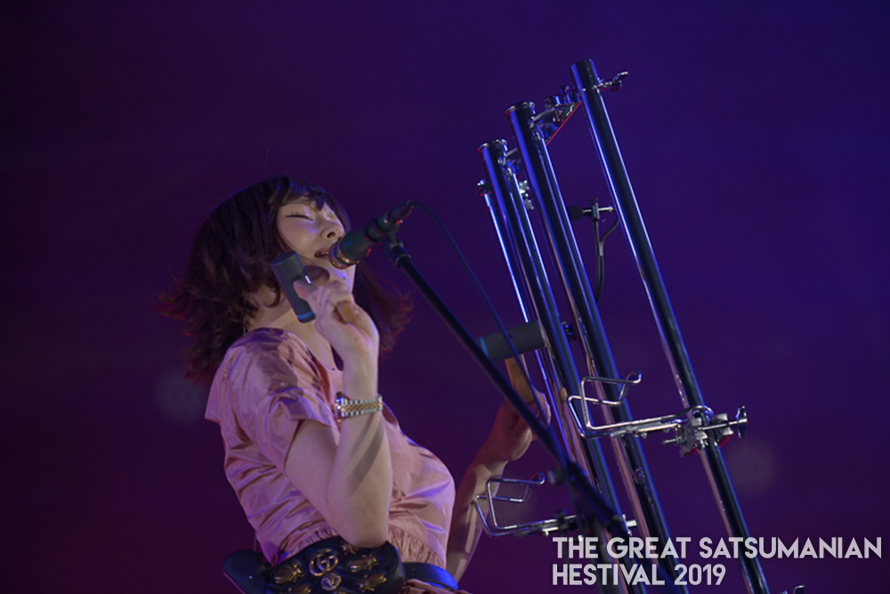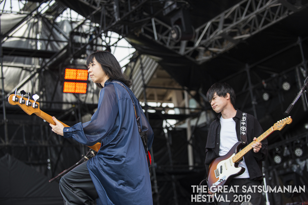 スリーピース編成になってからは年を重ねるごとに、タフに、芳醇に、強化されてゆくバンドアンサンブル。そのうえで紡ぐ、小出祐介(Vo,Gt)と関根史織(Ba,Cho)の男女ハーモニーが、大隅ステージに真空パックされた青春を鮮やかに描き出す。堀之内大介(Dr)のカメラパフォーマンスもばっちりだ。