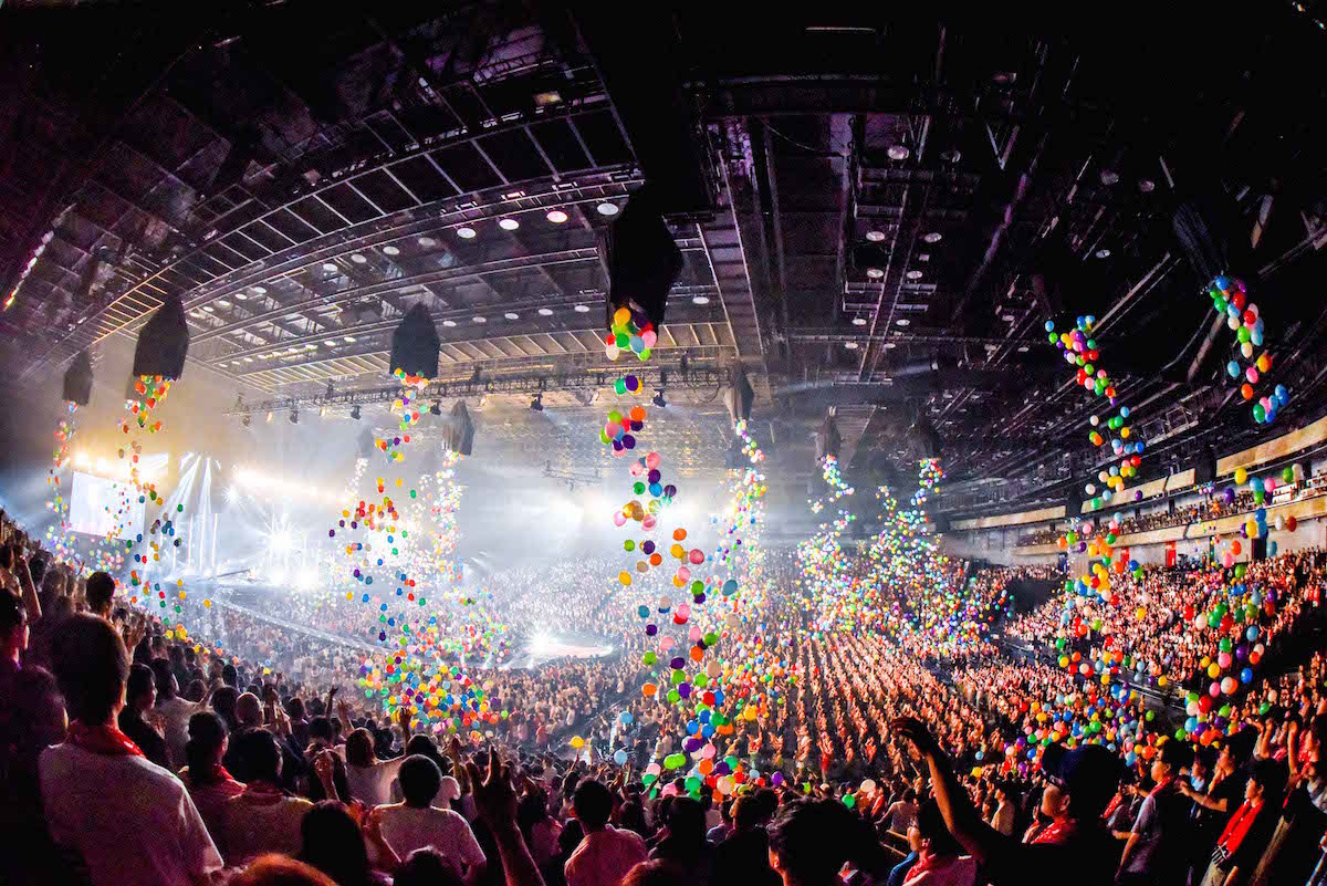 「うらやましいんですよ、二人が縦横無尽に動いてるのが。さすがにドラムは難しいんですが、いつか演奏しながら、みなさんのところに寄っていくことをやってみたいです」(吉川) ちなみにヘッドセットを付けた2人の感想は「ゼイゼイ言うね」(松岡)、「酸素が足りないね。でも楽しかったね」(宮崎)とのこと。ヘッドセットを使うことでフットワークは軽くなるが、音質に関してはマイナス面もあるし、呼吸音を拾ってしまうなどのデメリットもある。それでもあえてヘッドセットを使用したのは、アリーナという大きな空間だからこそ、観客の近くに行って歌を届けたい、一緒に参加して楽しく盛り上がってもらいたいというバンドの気持ちの表れでもあるだろう。バンドは大きな視野に立って、この演出を選択していたのではないだろうか。