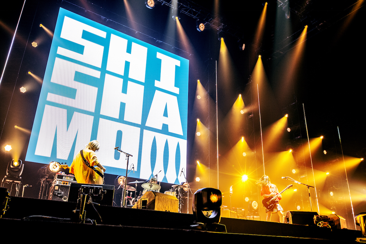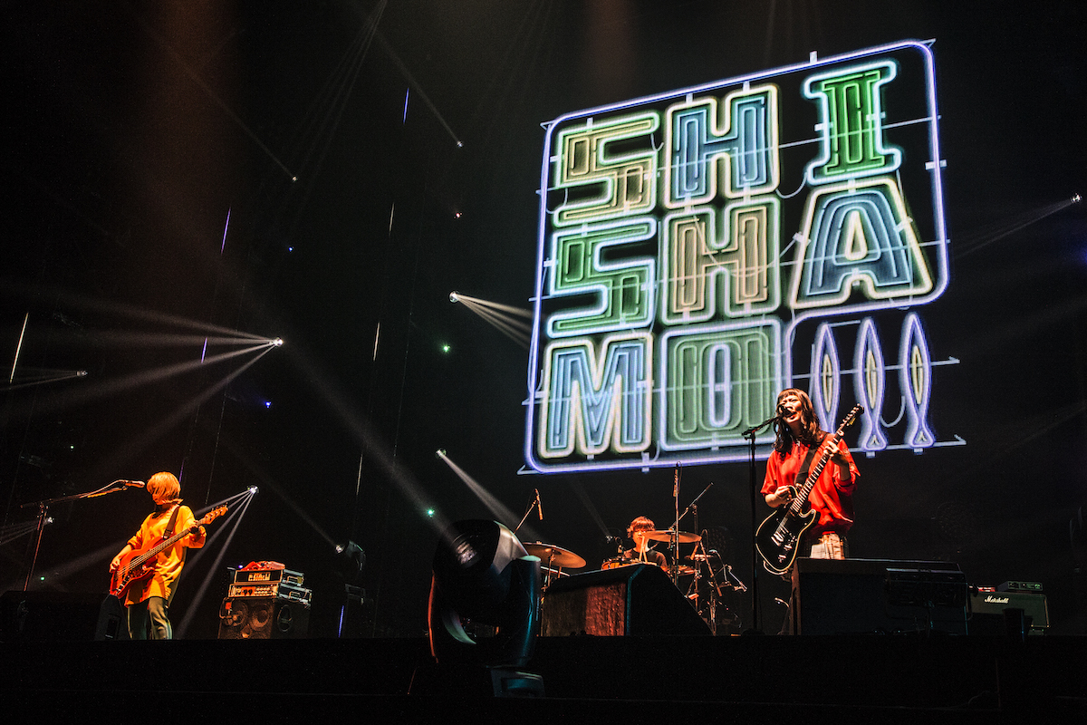 「みんな、キラキラしています。こんなすごい景色を見せてもらえるなんて、今までバンドをちゃんとやってきて、良かったなと思っています」という宮崎朝子(Gt/Vo)の言葉には確かな実感がこもっていた。この思いは松岡彩(Ba)にも吉川美冴貴(Dr)にも共通するものだろう。SHISHAMOにとって、ワンマンとしては最大となる約1万3千人の観客が詰めかけた、さいたまスーパーアリーナ公演。1週間前の9月22日には大阪城ホールで“WEST”が開催されており、こんなにたくさんの人が集まったのは、バンドのこれまでの音楽活動の積み重ねの成果と言えそうだ。もちろん数字以外の部分でもバンドの進化は顕著に表れている。3人はこの日、スーパーアリーナの大きな空間を活かして、音楽性の高さとエンターテインメント性の高さを兼ね備えた、素晴らしいステージを展開していた。