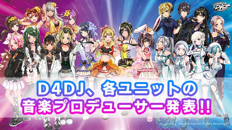各音楽プロデューサーの手による、ユニットごとの個性が光る楽曲が期待できそうだ。CD発売まではD4DJ公式YouTubeで各ユニットのオリジナル楽曲を試聴して楽しもう。