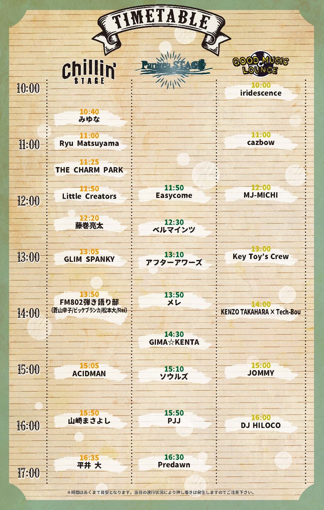 メインステージとなるChillin’ STAGEに加え、 Pangea STAGE、GOOD MUSIC LOUNGEと計3つのステージに開場時刻の10時から終演まで、全29アーティストが出演する。