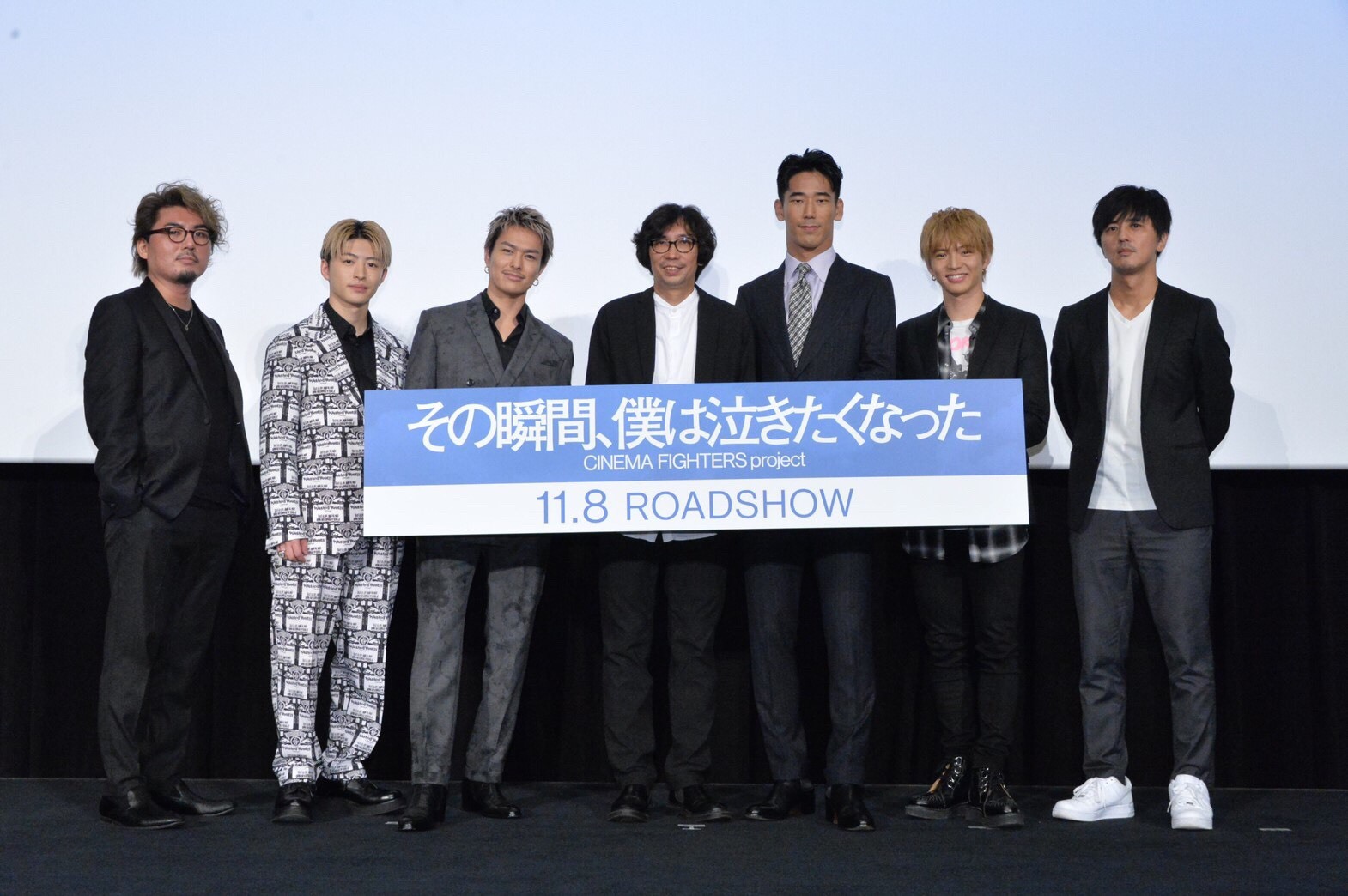 10月15日(火)、東京・TOHOシネマズ日本橋にて、『その瞬間、僕は泣きたくなった-CINEMA FIGHTERS project-』完成披露上映会が行われた。舞台挨拶には、キャストの小林直己(EXILE/三代目 J SOUL BROTHERS from EXILE TRIBE)、今市隆二(三代目J SOUL BROTHERS from EXILE TRIBE)、佐野玲於(GENERATIONS from EXILE TRIBE)、佐藤大樹(EXILE/FANTASTICS from EXILE TRIBE)、行定勲監督、洞内広樹監督、井上博貴監督が登壇した。