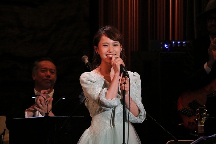 ディズニー作品からも2曲。映画『ムーラン』の隠れた名曲、と紹介した『リフレクション』、そして映画『アラジン』から『Speechless』を披露。『Speechless』は英語で熱唱し、観客を圧倒。終わってから「いつか声の仕事もしてみたいな……仕事をもらわないとできませんけどね。オーディション受けないとね」と笑いながらも将来の夢の一つとして掲げていた。