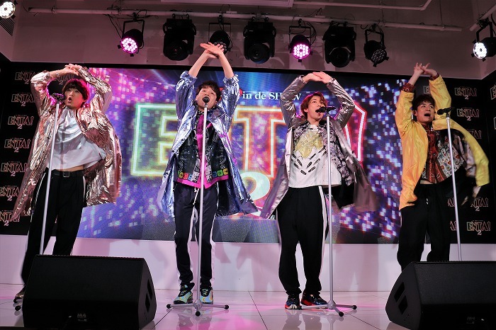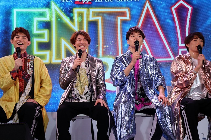会見の冒頭では「よろしくお願いいたしまーす!」と声を上げながら4人がステージに登場。前回の『ENTA!』で初披露された唯一のオリジナル曲「Everything 4 You」を披露。シンガーソングライター・堂島孝平の書き下ろし曲をステージ狭しと歌って踊る4人に大きな拍手が送られた。