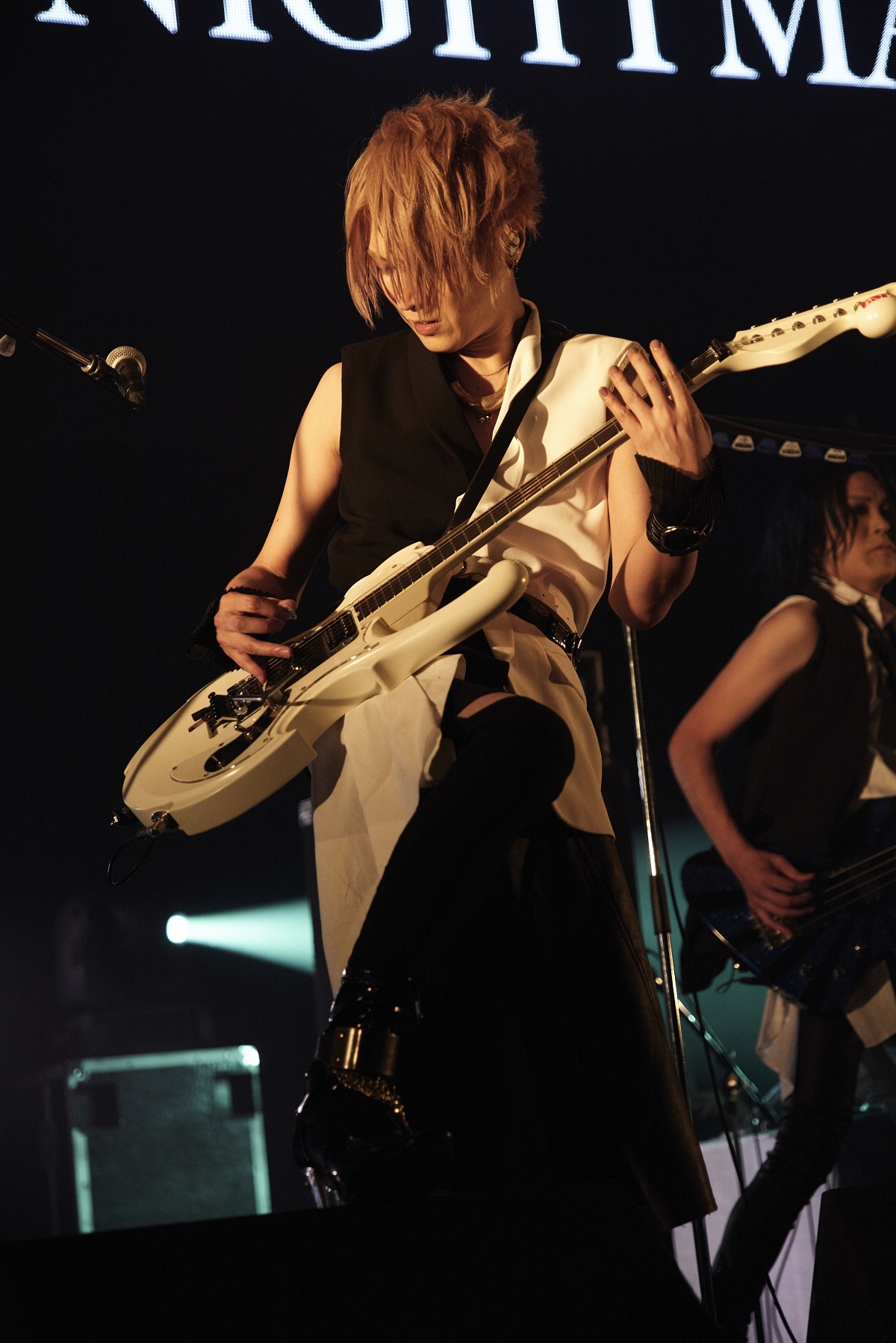 曲が終わり、絶叫するフロアに向けて耳に手を当て、さらなる歓声を求めるYOMI。その横で、咲人が両手を華麗に広げ、ポーズをとってみせる。YOMIが「ZEPP、そんなもんか?」「頭置いて帰れー! かかってこーい!!」と叫び、始まったのはNIGHTMAREの代名詞「極東乱心天国」だった。すぐさまフロアにはヘドバンが広がる。ステージを見ると、いつもよりも視線を上げ、場内も視野に入れながらプレイしているRUKAがいた。