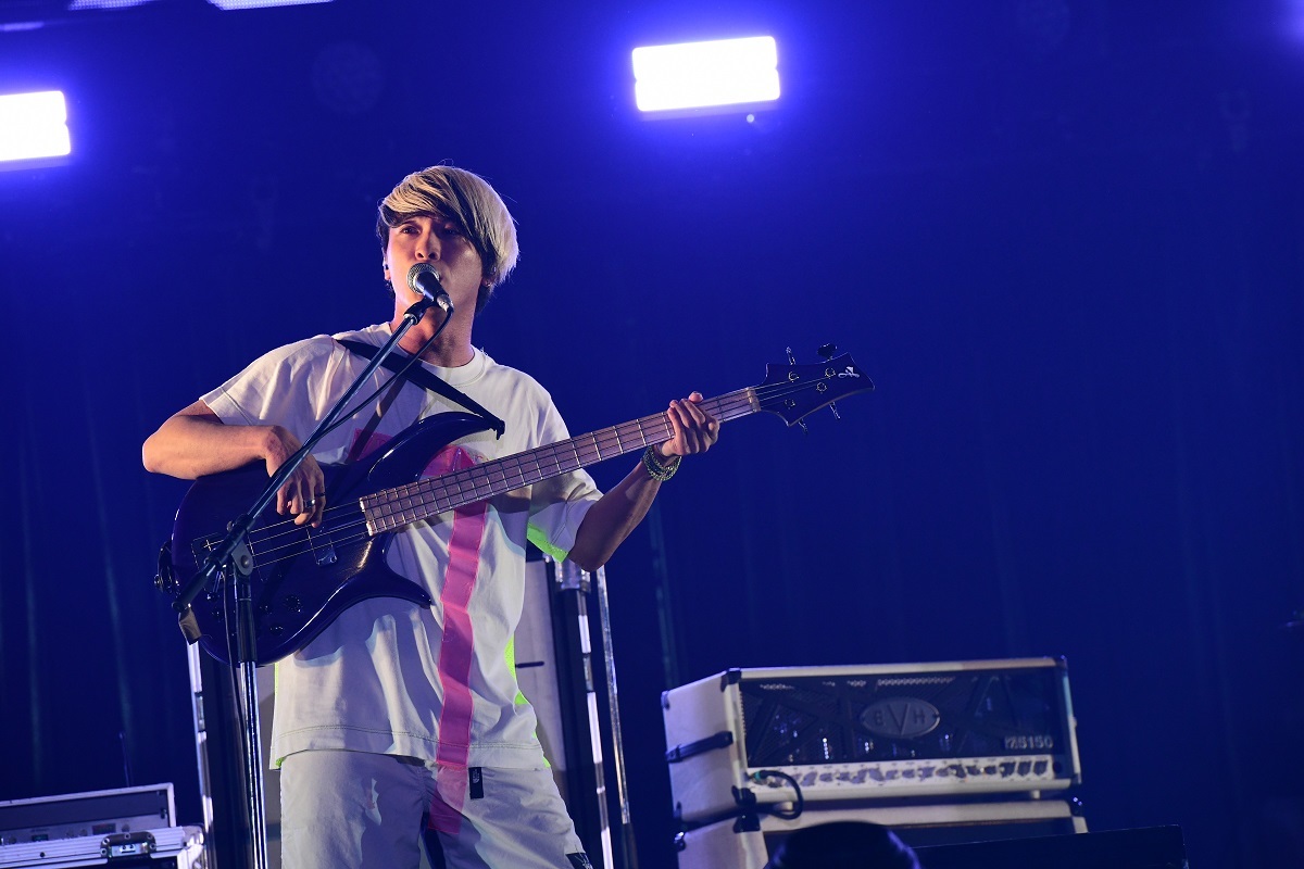 MCでは、「今日は私たちのワンマンライブをギュっとしていく感じでお送りしたいと思います」と伝えると、スタージを淡いピンクに染めた青春色のポップソング「HARUKAZE」から、バンドの過去と今とを鮮やかにつなぐ疾走感あふれる最新ナンバー「Fuzzy」へと間髪入れずに畳みかけていく。この日、彼女たちは唯一のガールズバンドだったが、本気でロックを突き詰める姿勢に男女の区別はない。圧倒的に男社会と言われるロックシーンをタフに戦い抜いてきたそのステージには、結成から13年にわたり、“女子である自分たちにしか鳴らせないかっこいいロック”を突き詰め続けてきたSCANDALの今が凝縮されていた。終盤、「SCANDAL BABY」で、ステージの真ん中で歌うHARUNAに、TOMOMIとMAMIが密着してじゃれ合うように演奏すると、思わずTOMOMIの笑い声がマイクにのった。集まったお客さんと同じぐらい、その瞬間を心から楽しもうとする4人の笑顔に後押しされるように、最終日ドリフェスが華やかに幕を開けた。