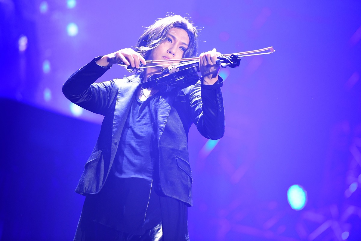 ヘッドライナーは、昨年、首の手術後初めてドラマーとしての復活を果たしたYOSHIKIだ。予定時間から20分ほど過ぎたころ、スクリーン映像で、激しいドラムプレイに起因する首の手術に至った経緯、亡くなったHIDE(Gt)とTAIJI(Ba)の夢を叶えるべく挑み続けたX JAPANの海外進出、命を賭して芸術を生み出すという決意――そんなミュージシャンとしてのスタンスを、まずそこにいる全員と共有してからライブがはじまった。YOSHIKIが弾くピアノとストリングスカルテットの演奏にのせて、YOSHIKI が率いる音楽ユニット・VIOLET UKの女性ボーカル・ケイティが紡ぐ、息を呑むほど美しいメロディが、痛みからの解放、あるいは悲しみからの救済を求めるように強く優しく響きわたった。
