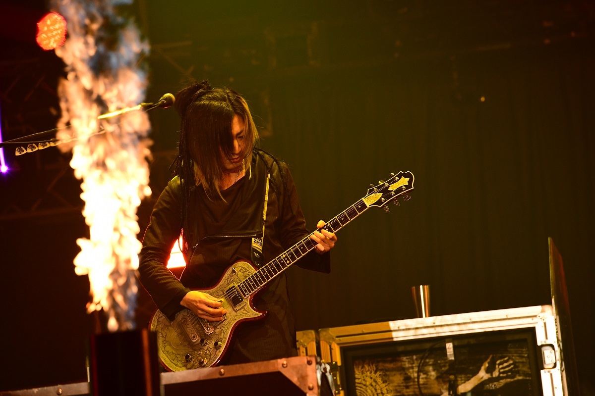 「ようこそいらっしゃいました!……というか、よくぞゴールデンボンバーを出してくだしました!(笑)」と、鬼龍院翔(Vo-karu)が満面の笑顔で、この夢のラインナップに加わったことへの喜びを伝えたゴールデンボンバー。ヴィジュアル系文化が生んだ異端児たちは、彼らにしかできないやり方でフェスに爪痕を残した。「元カレ殺す。」を皮切りに、序盤からアップナンバーを畳みかけると、「死 ん だ 妻 に 似 て い る」では、エアバンドの強みを生かし、メンバー全員が振り付けで踊る。楽器の演奏こそしないが、鬼龍院のビブラートを多用した生のボーカルは圧倒的だ。