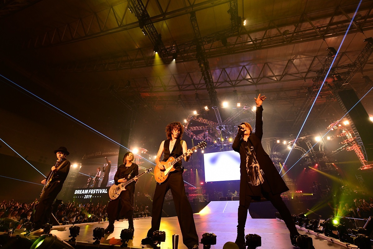 今年もテレビ朝日が主催する豪華音楽の祭典『テレビ朝日ドリームフェスティバル2019』が幕張メッセで行なわれた。残念ながら『関ジャニFES』の予定だった初日(12日)は台風19号の直撃により中止になったが、後半の2日間(13、14日)は無事に開催。以下のテキストでは、その最終日の模様をレポートする。この日、ヘッドライナー・YOSHIKIをはじめ、LUNA SEA、GLAYという90年代ヴィジュアル系シーンの覇者に加えて、その影響を受け継いだ異端児・ゴールデンボンバー、さらに若手バンドからは既にアリーナ級の会場を埋める人気と実力を誇るSCANDAL、THE ORAL CIGARETTESと、全6組が出演。いま新しい時代を作ろうとする世代から、ひとつの時代を作り上げた世代へ。1本のバトンを受け渡してゆくようにつながれた夢のイベントは、どんな時代にも、自分たちの信念を貫き、リスナーの心の拠り所であり続ける“ロックバンド”のかっこよさを再確認する意義深い一夜になった。