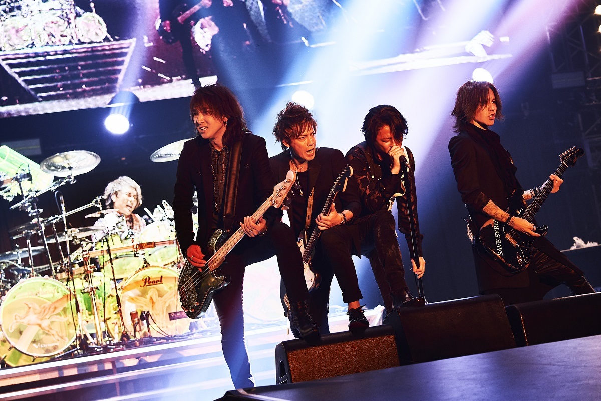 MCでは、今年結成30周年を迎えたことに触れて、「語れば涙、聴くも涙、思い出しても涙。でも、幸せいっぱいの30年でした。みんなのおかげです、ありがとう」と感謝を伝えたあと、お客さんの頭上をレーザーの光が激しく飛び交ったスペイシーなナンバー「宇宙の詩 ~Higher and Higher~」や、壮大なサウンドスケープにのせて別れの悲しみの歌い上げる「悲壮美」という、今年3年ぶりに発表された最新シングルの楽曲たちを披露。いまなお更新し続けるLUNA SEAの現在地にも、激しくも儚く人の運命や生き方を描くLUNA SEAの哲学が貫かれていた。終盤、「IN MY DREAM」で会場に銀テープが噴射して、フロントにRYUICHI 、INORAN 、SUGIZO 、J(Ba)の4人が並び立ったワンシーンはまさに壮観。これぞロックバンドという王者の風格に痺れた。