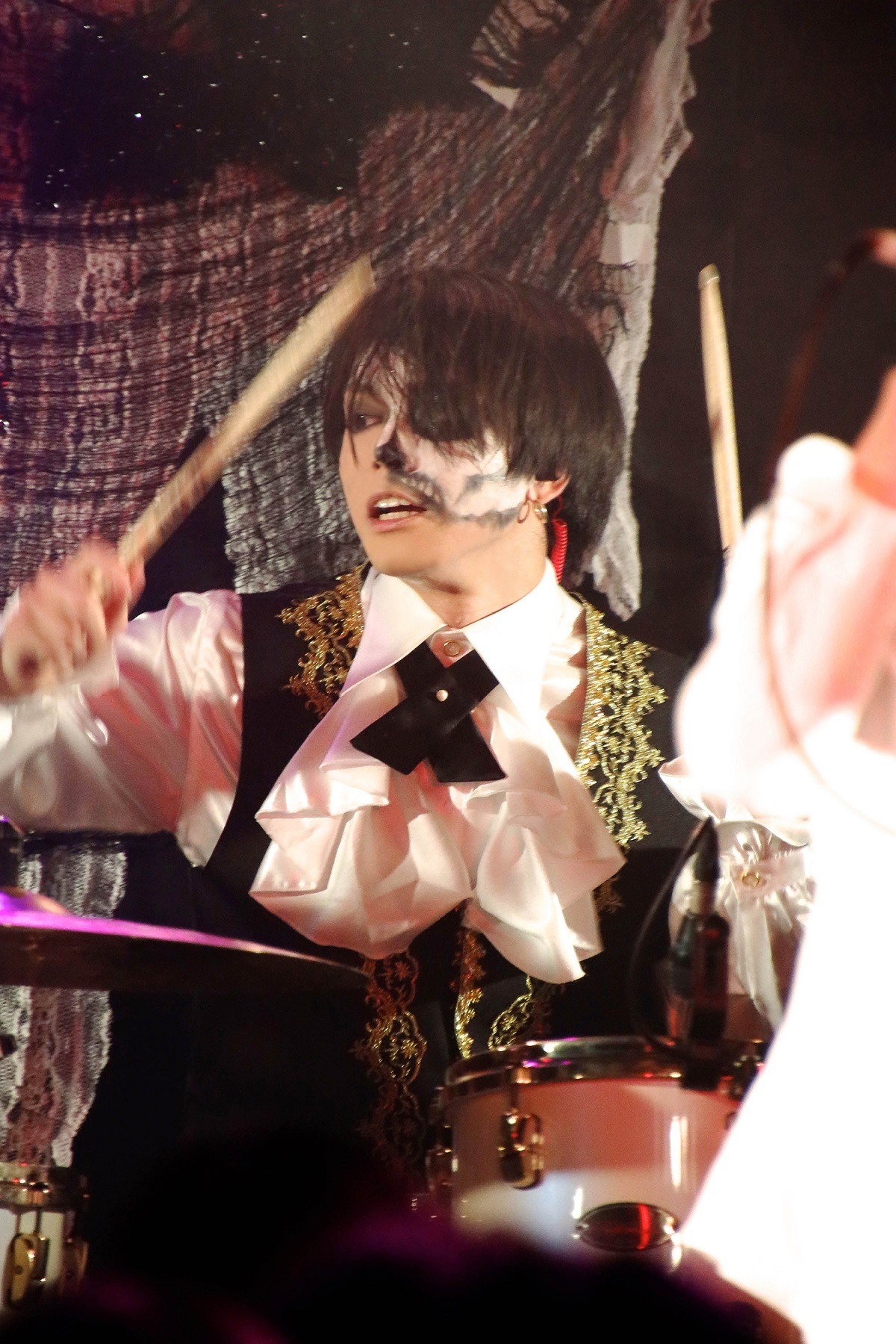 MCでは「BLACK HALLOWEENへようこそ!思う存分楽しんでいって!とりあえず俺らは…このマスクが(暑すぎて)やばい…!」と笑いを誘った。そして、メンバー紹介の場面で初めてマスクを取ると、スカルメイクが施されたメンバーの全貌が露わに。クラシカルでダークな衣装に身を包み、この日限りの特別な装いとなっていた。