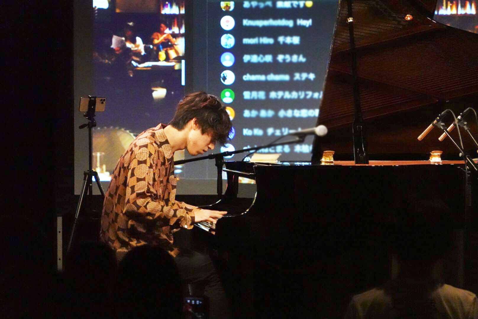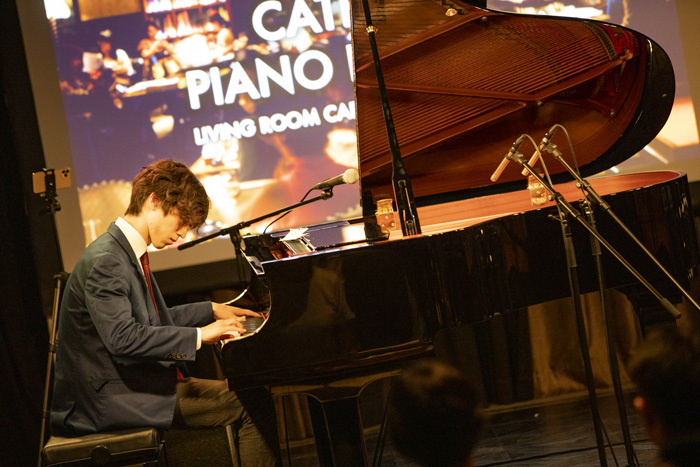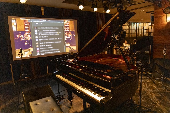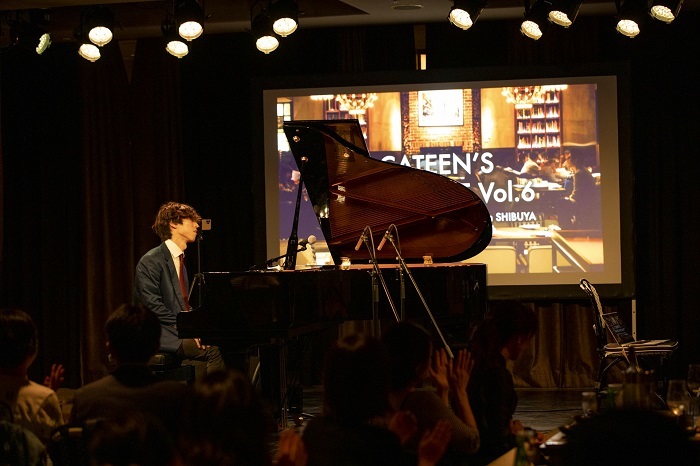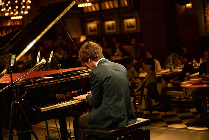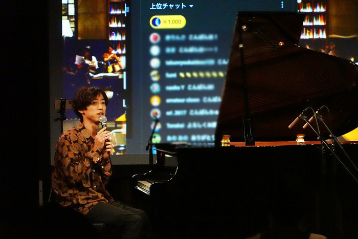 「この『Piano Live』は、これまで僕が自宅のリビングから生配信してきたものですが、今夜はそのまま、ここeplus LIVING ROOM CAFE&DININGで行います。この会場のコンセプトは、アーティストが自分のリビングルームに友達を招いてコンサートを行うというもの。僕が自宅から配信しているライブのコンセプトそのものなんですね。YouTubeライブの良さは、堅苦しくなく、気楽に楽しめるというところ。この会場は、それをそのまま持って来られる場所だと思い、今夜の開催に至りました。今夜はここにいる皆さん、そして画面越しの皆さんと一緒に、楽しみたいと思います」