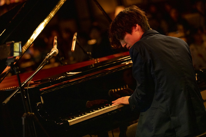 さらにはアンコールとして、「ルパン三世」と「名探偵コナン」のナンバーを織り交ぜた、キレッキレのメドレーを聴かせた角野。1時間10分を超えた2ndセットを、ここまでノリよく弾き続けられるのは、角野の柔軟な音楽脳と、無駄な力が一切抜けきった身体があってのことだろう。どの瞬間も決して“曲芸的”なパフォーマンスに陥ることなく、音楽的な充足感に満ちた演奏だった。