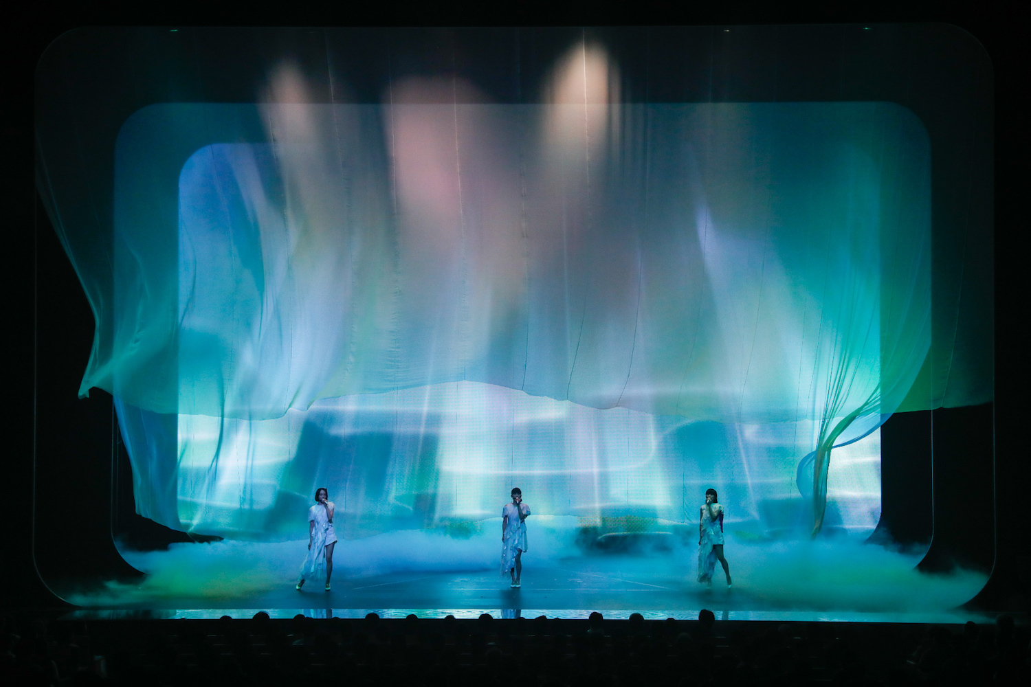 今度はどこからともなく白い帳が降り、そこに蛍のような無数の仄かな光が宿る。やがてそれは揺らめくオーロラに。始まったのは「Dream Land」だった。これを聴くのは2013年の東京ドームのラスト以来ではないだろうか。ディムライトのなか3人は、せつないメロディをひたむきに歌う。ふと、「このわずかな光を、君は光と感じられるかい?」と問いかけられている気がした。それは、テクノロジーと共存してきたPerfumeからのあえてのアンチテーゼのようでもあった。どんなデータの蓄積にも勝るのは、3人の心に蓄積されているけっしてデータにはできないもの。それこそが光なのだ、と、ハッと気づく感動のラストシーン。もしかしたら、そこにすべてを集約するための「Reframe」だったのかもしれない。