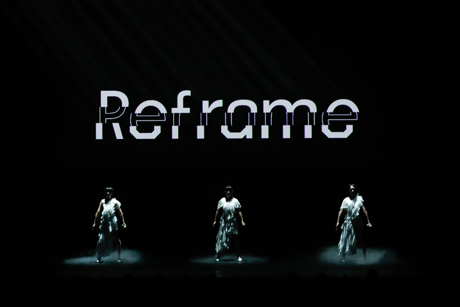 『Reframe』誕生のきっかけは2017年に遡る。まずあったのは、エンターテインメントの可能性に照準を当てた『Perfume X TECHNOLOGY』というNHKの番組企画だった。そこに連動する公演『This is NIPPONプレミアムシアター『Perfume X TECHNOLOGY』presents "Reframe"』が行われたのが、2018年の3月のこと。演出・振付はMIKIKO、インタラクションデザインはライゾマティクス。前者はPerfumeのメジャー・デビューからの全振付と演出を、後者は技術面でPerfumeの革新的ライブを支え続けている。両者ともが、リオ・オリンピックのフラッグ・ハンドオーバー・セレモニーを成功に導いたキー・パーソンでもあったため、2018年の『Reframe』は内外に大きな反響を呼んだ。
