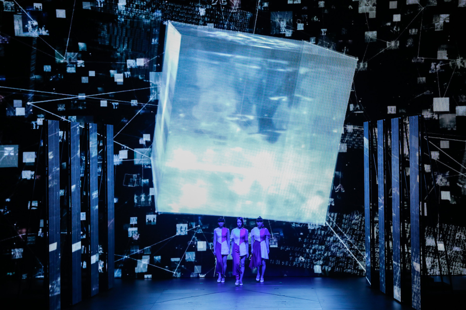 『Reframe 2019』は、その同じチームによってさらに進化した最新バージョンというわけだ。そもそもの「Reframe」のテーマは「再構築」。楽曲、音声、ダンス・パフォーマンス、写真、映像といったノーマル素材から、MVやライブ制作のためライゾマティクスと記録してきたモーション・キャプチャーや3Dスキャンといった特殊素材まで、Perfumeがこれまで蓄積してきたさまざまなデータを、最先端の演出アイディアと技術で再構築し、Perfumeの今のストーリーとして見せるというのが大命題だ。歴史あるPerfumeだからこそできる『Reframe』と言える。ある意味技術のショーケースでありながら、Perfumeの世界観自体も深みを増していくという、この両軸の進化が成立するのは、Perfume、MIKIKO、ライゾマティクスに、互いへの尊敬と信頼という蓄積があるからだろう。