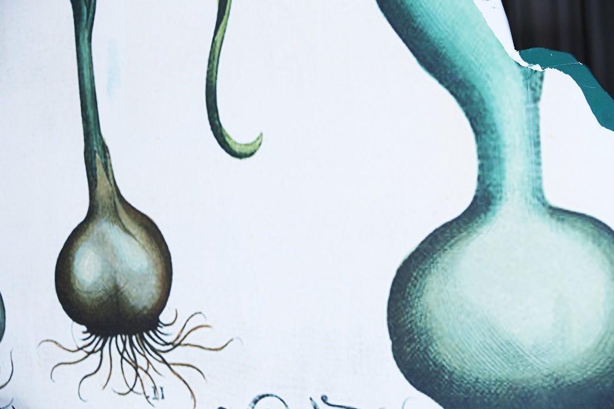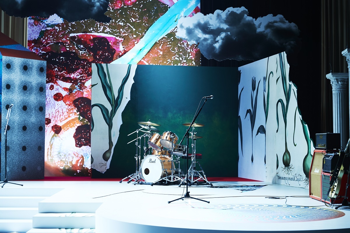 ギターの菊地英昭(エマ)の足元には「パール」のMVに登場する“目”、ドラムの菊地英二(アニー)の後ろには「球根」、ベースの廣瀬洋一(ヒーセ)の後ろには、「バラ色の日々」をモチーフにした壁紙が登場。背面の大きく色彩豊かなアートは「JAM」のこ“の世界に真っ赤なJAMを塗って”という歌詞から監督が自ら本物のジャムを塗ってデザイン画を制作した。