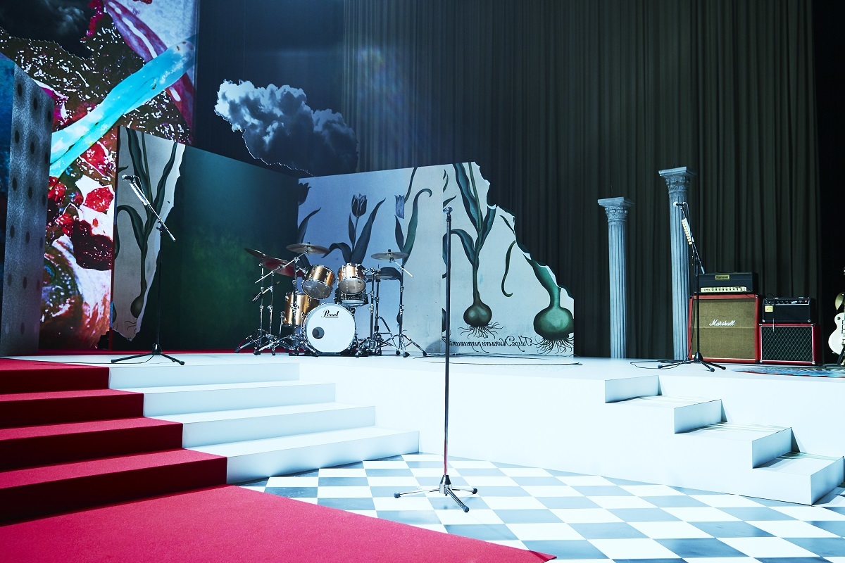 “新しい音楽を作り続けている場所”としてまずはレコーディング・スタジオに見立てたセットを作り込み、そこでパフォーマンスがスタートする。そのスタジオが開くと、次には大きなステージの世界へ。スタジオで作った音楽を届けるステージを表現した次なるセットには「JAM」、「パール」、「バラ色の日々」などイエローモンキーが今までリリースしてきた代表曲の歌詞やモチーフが散りばめられている。