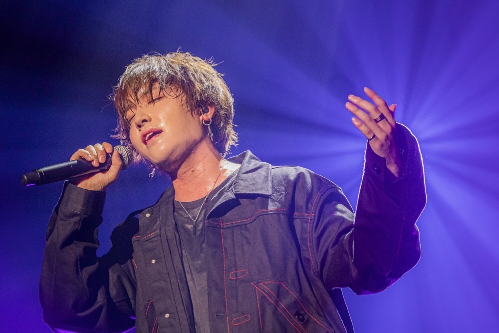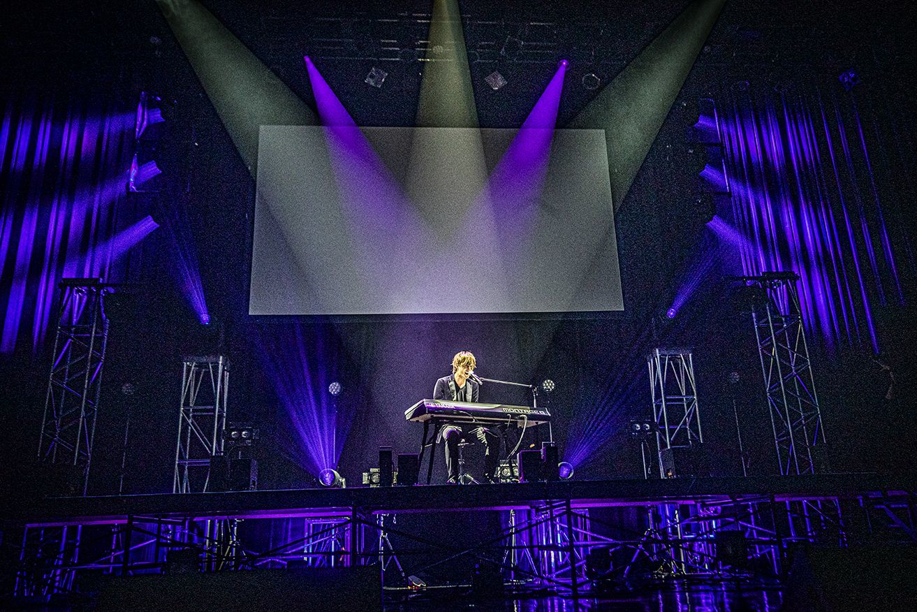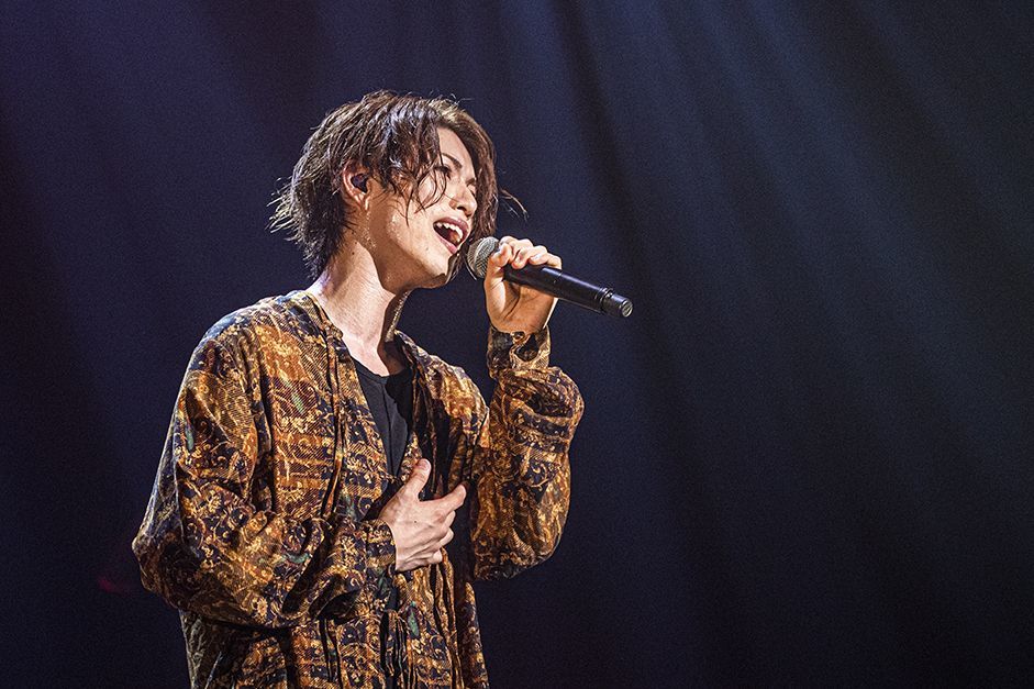 場内が暗転、ここからはソロとIVVYで魅せていくブロックへ。まず最初に始まったのはTOSHIKIとTAIYUのソロのイメージ映像。続いて、TOSHIKI がハンドマイクを握ってセンターに現れ、TOSHIKIならではの甘く柔らかなハイトーンをたっぷりフィーチャーしたソロ曲「ONE」をしっとり歌い上げる。上下白い衣装に着替えたTAIYUはダンサーを引き連れて登場。「Run away」を持ち前切れ味抜群のダイナミックなダンスで魅せていった。場内が暗転し、音だけで海辺のドライブを回想させるようなSEが流れだす。車のなかで流れるラジオのBGMが「Too late」に変わったところで、白シャツ×ジーンズに着替えたメンバーがオンステージ。YU-TA の透明感ある声が、このロストラブソングのせつなさをより一層引き出し、観客は静寂のなかで彼らの歌に聞き入っていった。