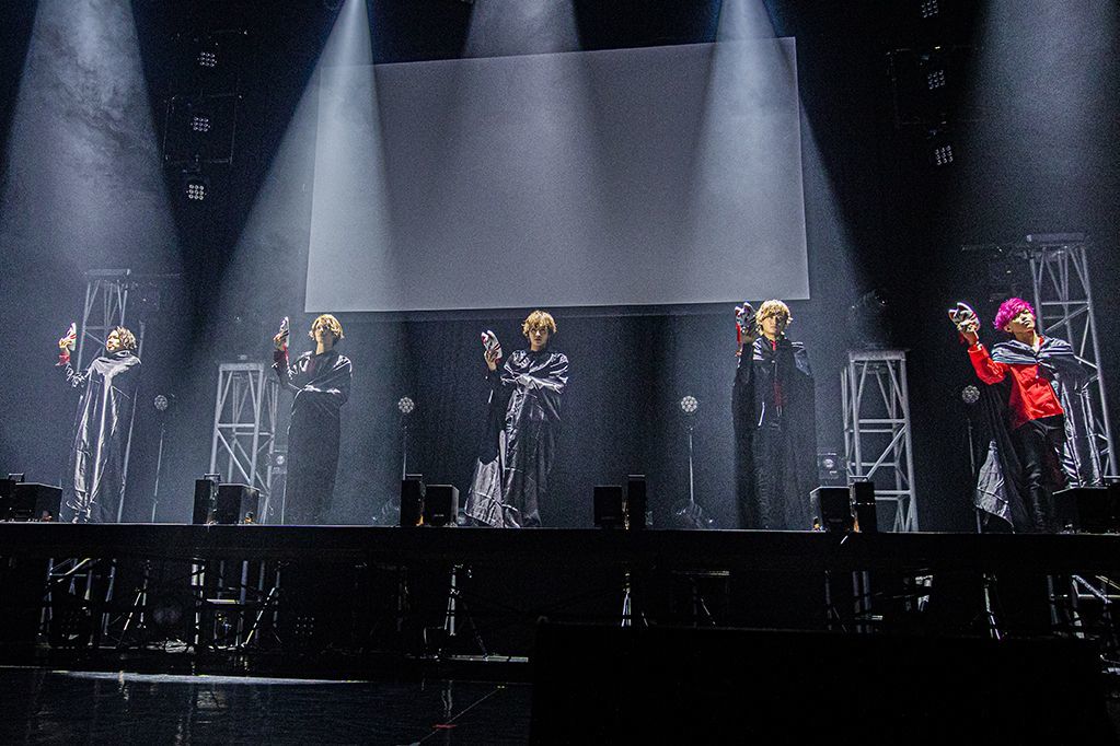 この日は、オープニングからまるでドームを見据えたようなステージングを連発。メンバー紹介をかねたオープニングムービーに続いて、和楽器をフィーチャーしたEDMが大音量で鳴り響くと、5人のシルエットが浮かび上がる。舞台から1段高いところに設置されたステージに全員が並ぶと、羽織っていたマントを一斉に脱ぎ捨て、赤×黒の衣装を着たメンバーにスポットが当たる。そこで場内は狂喜乱舞。長身のメンバーが揃ったIVVYは、メンバーが並ぶだけでその存在感は群を抜いている。