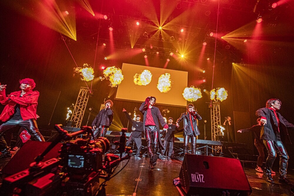 ロックなギターリフ×和笛×デジタルサウンドがインパクト大な新曲「SHOW」でライブは幕開け。広いステージでは、5人の長身が映える。間髪入れずにIVVYのなかでも重厚感があり、ダンスの難易度もマックスな「Light on fire」へ展開すると、4人のダンサーがイン。彼らとシンクロしながらのステージング。さらには、赤いレーザービームが飛びかうなか、舞台ではファイアーボールがバンバン上がり続けるという、いままで見たことがないようなド派手な演出にどよめきが起こる。そんなファンをコール&レスポンスで落ち着かせ「Baby I’m Back」では“オッオッオー!”と全員で合唱するなか、KENTO.iがまずは自慢の腹筋をチラ見せ。続く、ミラーボールが回る中でピンクの照明に包まれセクシーさ満載で歌う「Pain」では、TAIYUがセクシーな腰つきで場内をわかしていった。
