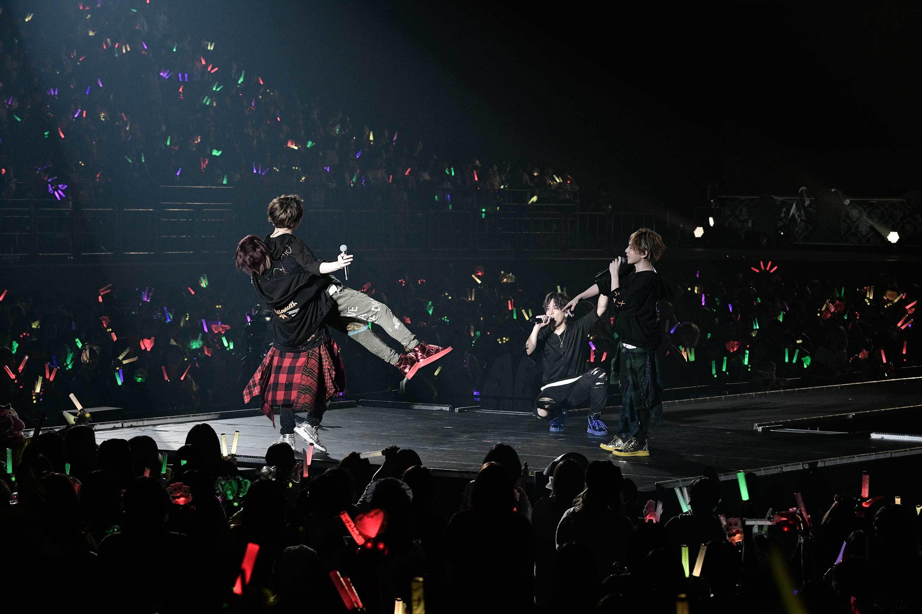 だが、“カッコいい”という枠だけにおさまり切ってしまうのはエンターテイナーとしての性分が許さないのか、彼ら4人はこの後に続いた幕間映像において『飛び立て!人間ペットボトルロケット!!』という、体当たり企画にも挑戦してしまう。ここでは男気ジャンケンで全敗したセンラが、1回目は10本、2回目は50本ものペットボトルロケットを背負い大空への飛翔を目指すも、あえなく両回ともプールへと派手に墜落。ズブ濡れになったセンラが「ちょっとー、俺らアイドルじゃないの? あ、でもおもろかったんならえぇわ。おっしゃー!」とガッツポーズをし、その姿にうらたぬき、となりの坂田。、志麻がウケまくるというバラエティ度100%の映像が、横浜アリーナ全体を笑いの渦へと巻き込んだことは、もちろん言うまでもなかろう。