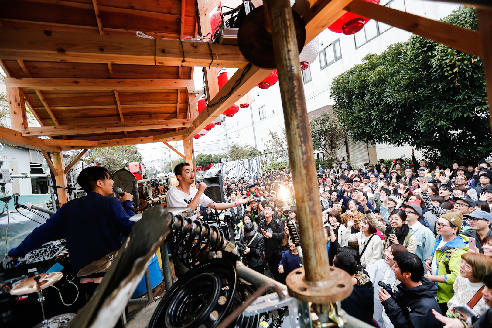 鉄工島FES 2018・KAKATO(環ROY×鎮座DOPENESS)・山車ステージ(山本修路_市川平)」 (C)行本正志