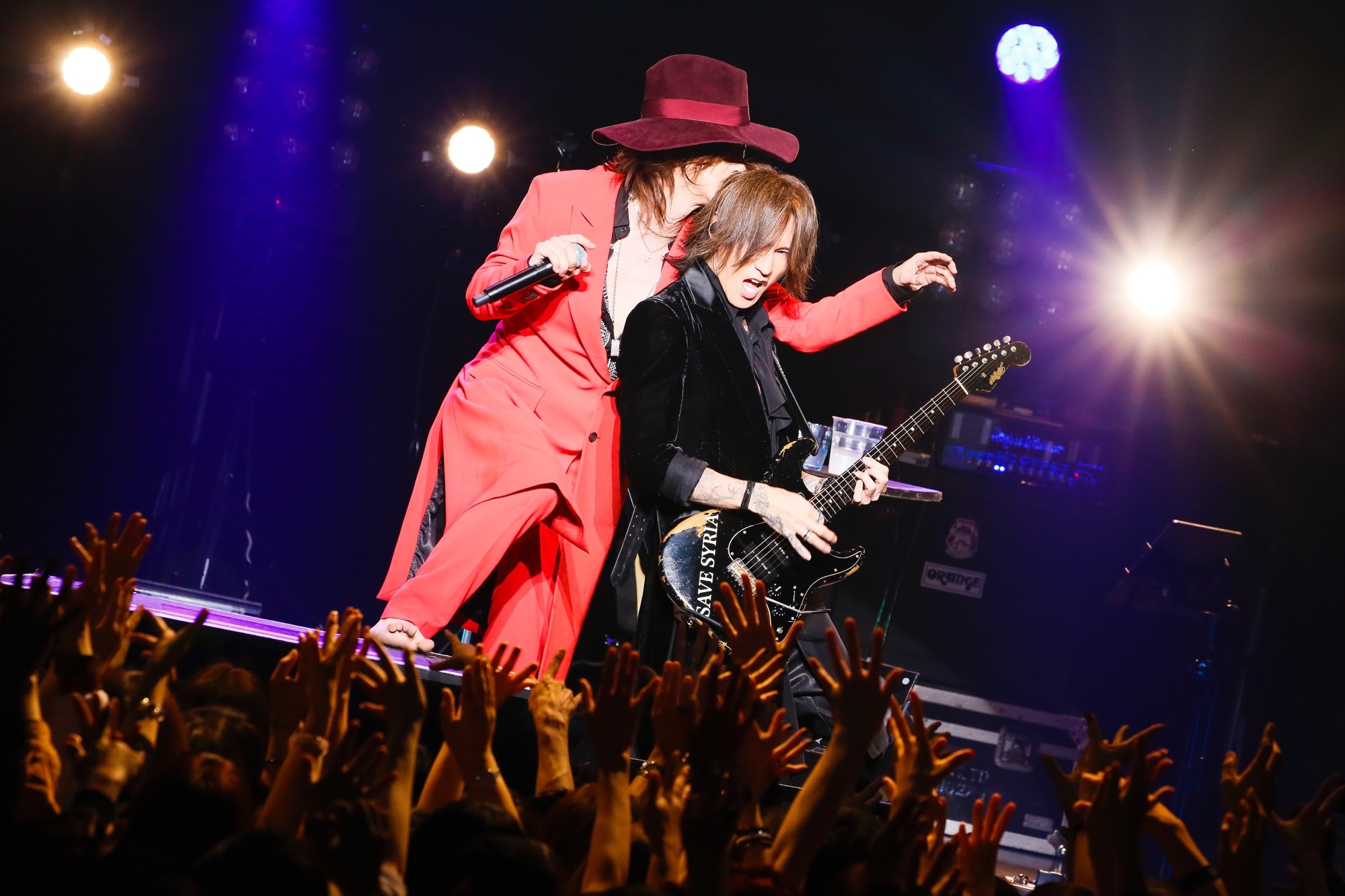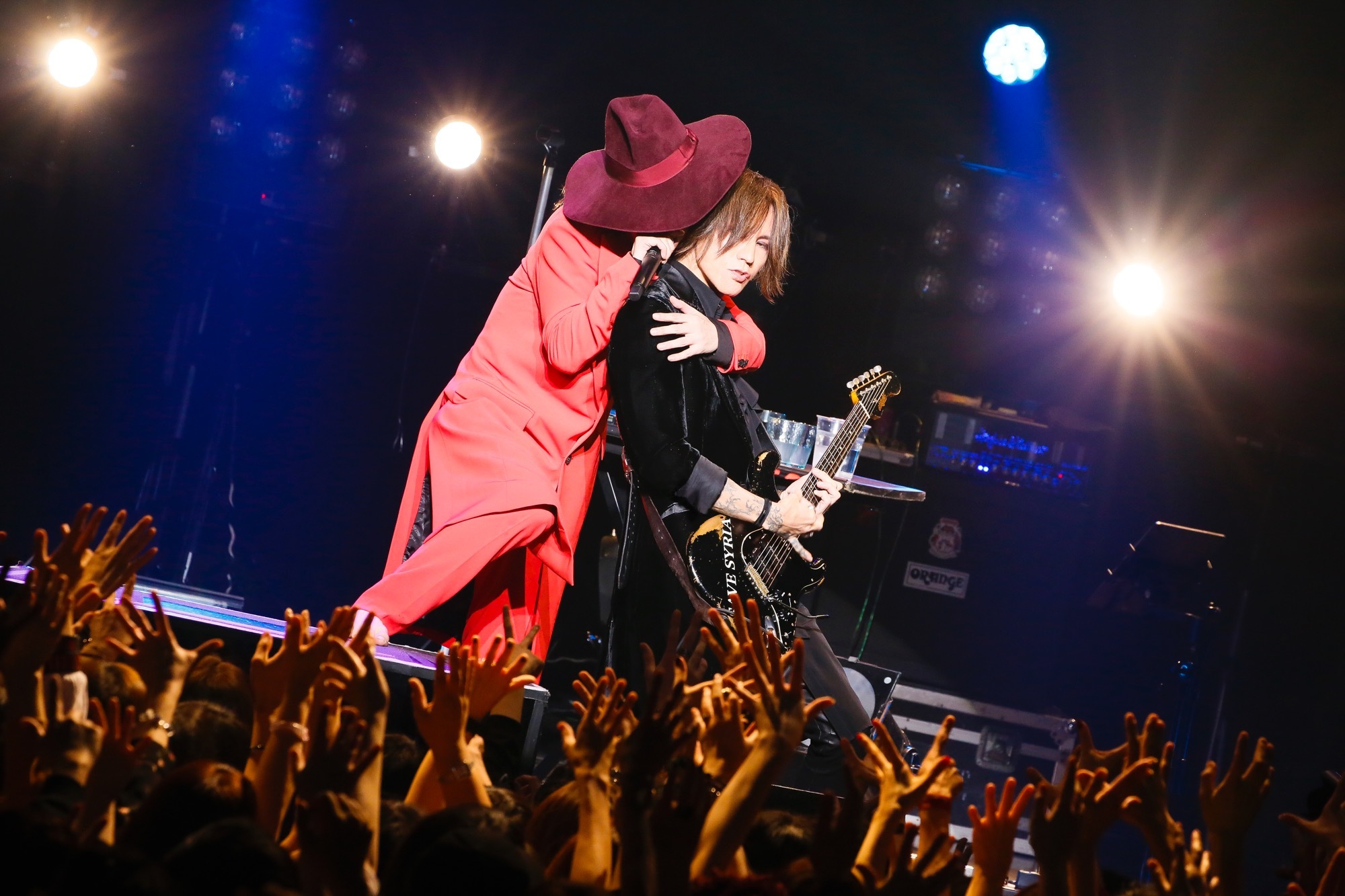 もちろん、SUGIZOにはサプライズ・ゲストとしての大切な役割がある。ここで場内を興奮に導いたのは「VOICE(feat.清春)」。SUGIZOのソロ・アルバム『ONENESS M』で清春がゲスト参加し、MVで共演も果たした名曲だ。常に変化を恐れずに、己の感覚を研ぎ澄ましてきた二人だからこそ生まれる宇宙的官能。「永遠のライバルで、永遠の親友です」とSUGIZOが清春を祝福すれば、清春は「フロア揺らして! SUGIZO君の記憶にみんなの姿が残る様に!」と扇動する。更に続けて披露された「20th Century Boy」はT.REXの原曲以上にゴージャスなグルーヴを帯びた名カヴァーだった。激しくギターを奏でるSUGIZOと歌い叫ぶ清春がぴったりと寄り添い合う。互いの孤高の美学が共鳴するこの光景にいつまでも溺れていたくなった。