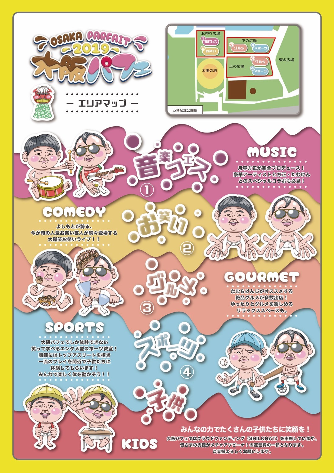 本当に楽しいお祭りになると思います。吉本が手掛けるUSJ(ユニバーサル・スタジオ・ジャパン)だと思っています。楽しい、うまい、おもろいがギュっと詰まってるから来ないと勿体無いですよ。あと、心配なのは天気だけですね。最近毎朝空を見上げて、晴れや曇りの天気に一喜一憂しているんです。今までの人生でこんなに天気を気にしたことはないです(笑)。とにかく子どもたちに喜んでもらえるようにと考えたので期待していてください!
