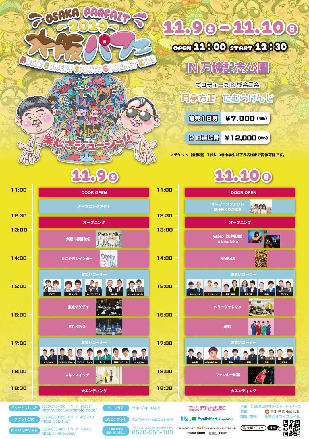 月亭方正、たむらけんじプロデュース&総合司会の大型野外イベント『大阪パフェ』が11月9日(土)、10日(日)の2日間にわたり、大阪・万博記念公園で開催される。スキマスイッチ、ファンキー加藤、yaiko(矢井田瞳)といったアーティストを迎えた音楽ステージはもちろん、アインシュタイン、EXIT、霜降り明星なども参加するお笑いコーナー、さらには普段イベントにはなかなか出店しない店を厳選したグルメエリアに、トップアスリートを招いたスポーツエリアなど、まさに「パフェ」のような秋にぴったりの企画盛りだくさんで、ファミリーでも楽しめる注目のイベントとなっている『大阪パフェ』。開催直前に発起人である月亭方正に意気込みを聞いた。