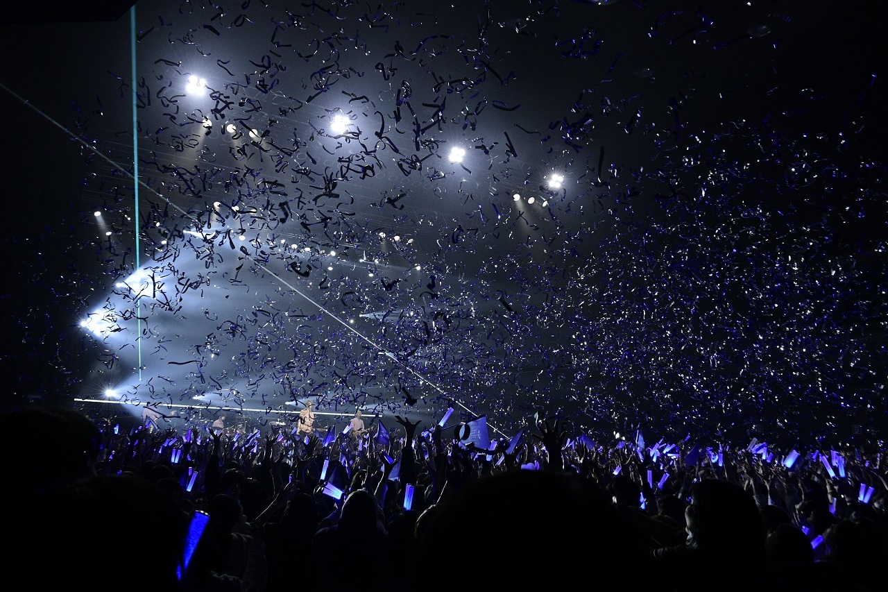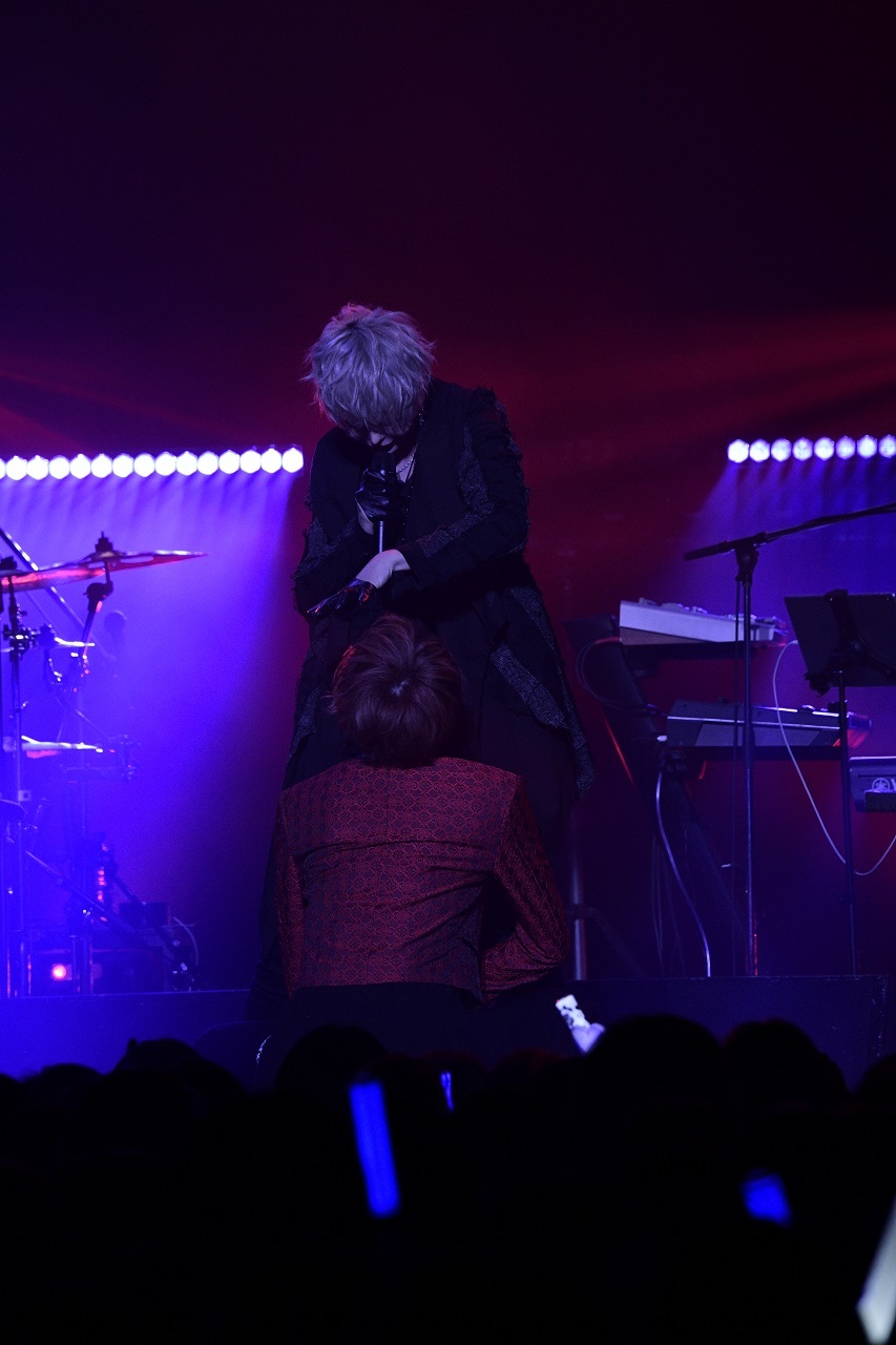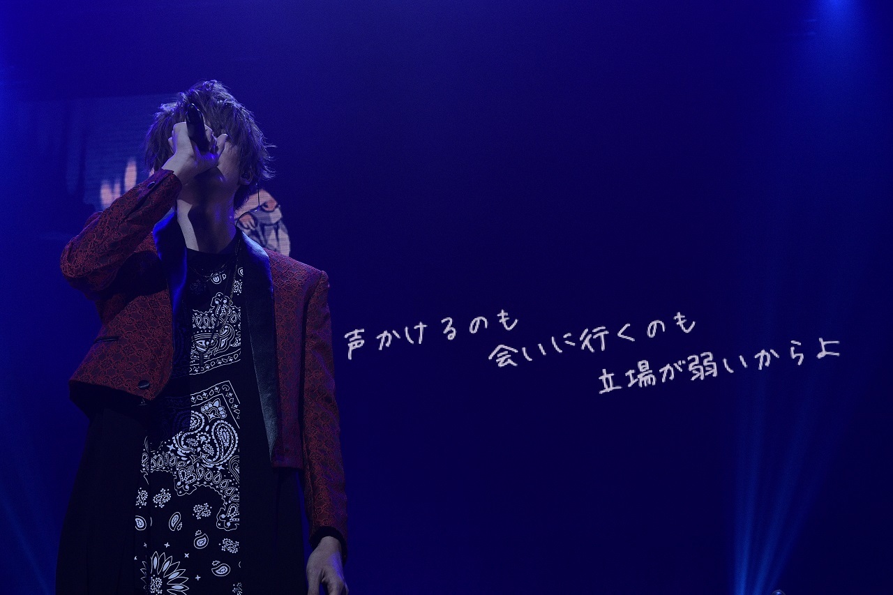 オフィシャルグッズのミニフラッグを振りながら歌った「キャットアイメイク」で始まったアンコールでは、Nissy(西島隆弘)の「トリコ」、椎名林檎の「丸の内サディスティック」と、J-POPナンバーも彼らしくカバー。「トリコ」ではオーディエンスのコールも完璧で、しゅーずも思わず「すげーじゃん!」とうれしそうな笑顔。さらには、しゅーずの手招きでピンクのツアーTシャツを着たセンラ、luzも加わってダンスして、歌詞に合わせて見つめ合ったり手を取り合ったり。この日のために踊りを覚えてきたという2人、センラは浦島坂田船の一員だけあってダンスも堂に入っているし、luzはカリスマティックな歌う姿とはまた違ったあやふやな動きも愛くるしい。そんな2人を、「大好き、ありがとう、愛してる!」と見送ったしゅーず。本当に、素敵な関係性だ。