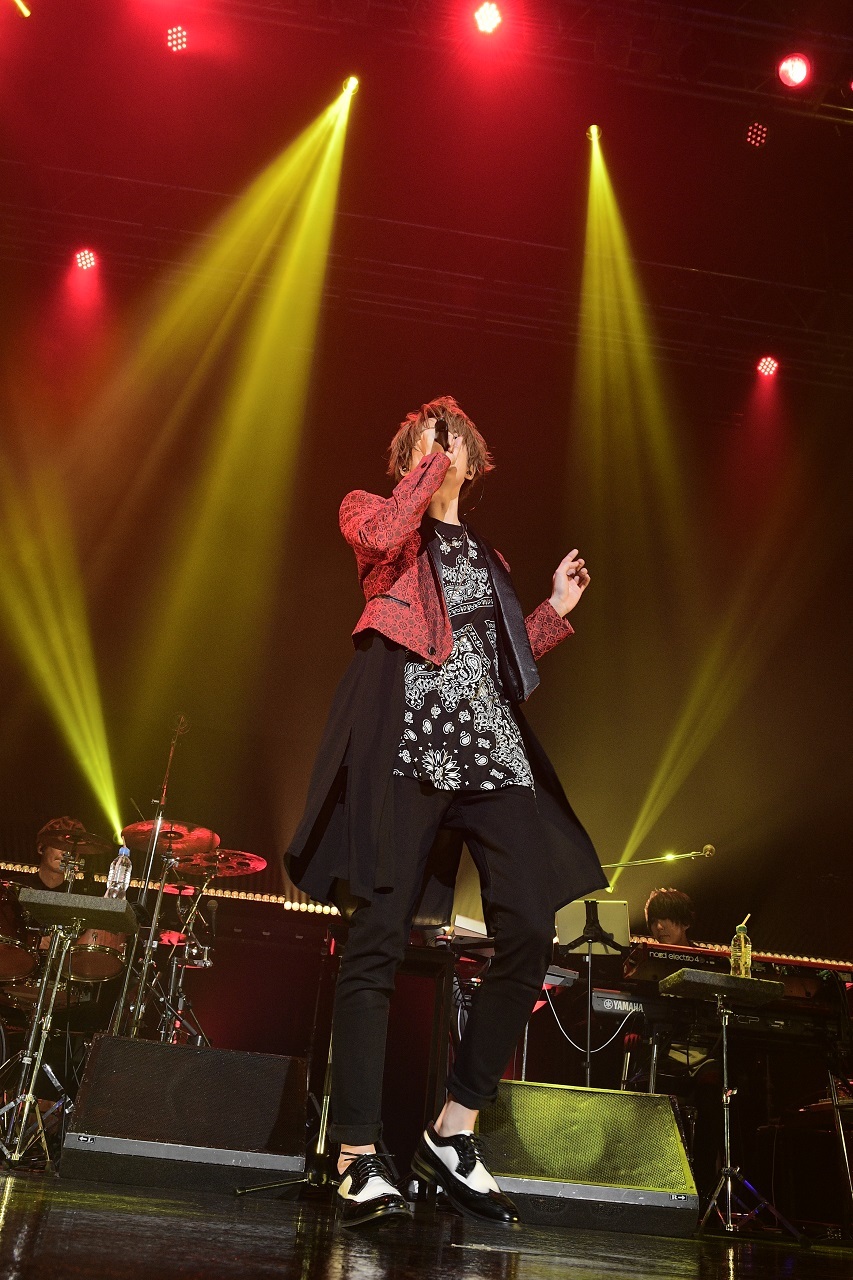 8月にリリースされたフルアルバム『DEEPEST』のリード曲「Highway Lover」のMVを使った、しゅーずが深夜の首都高で車を走らせるオープニングムービー。ハンドルを握る姿にしても、タバコの煙をくゆらせる姿にしても、オトナな色気にドキドキしてしまう。そして、赤が鮮やかなジャケットをまとってステージに現れ、バンドを従えて歌い始めた1曲目は「Highway Lover」だ。柔らかで巧みなファルセットやフェイクといい、“2番手の女性”が抱える複雑な心模様を描き出すその歌声から“逃げだそうなんて無理じゃん”と、あらためて思い知らされる。アップテンポな「セカンド・キス」や「夏蜘蛛」では地声から裏声へのきれいなつなぎも見事だ。