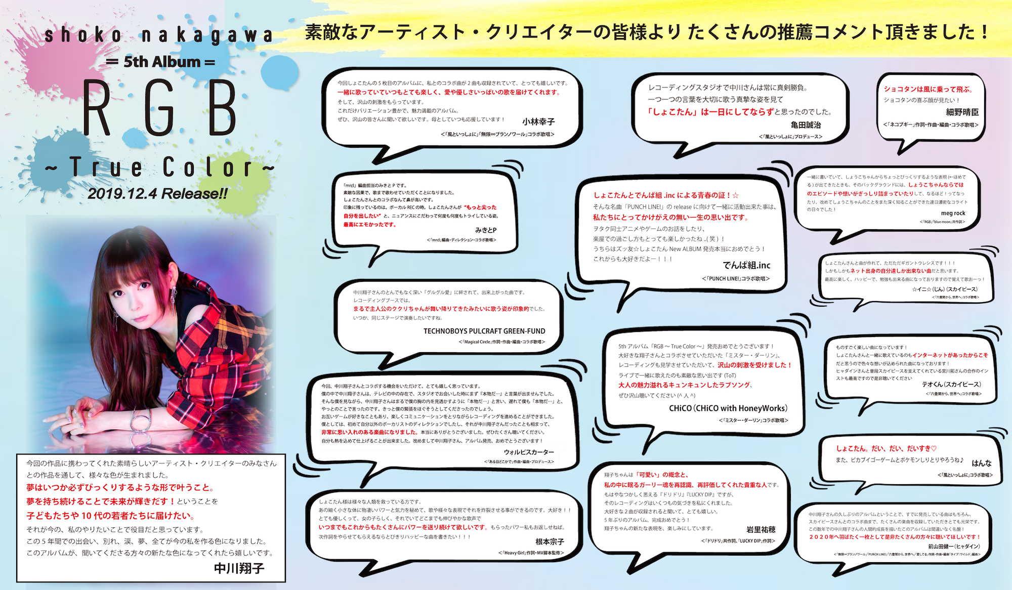 中川翔子の約5年ぶりのオリジナルアルバム『RGB ~True Color~』(12月4日発売)にYouTuber・スカイピース、ボカロP・みきとP、歌い手・ウォルピスカーターらとのコラボ楽曲が収録されることが決定した。