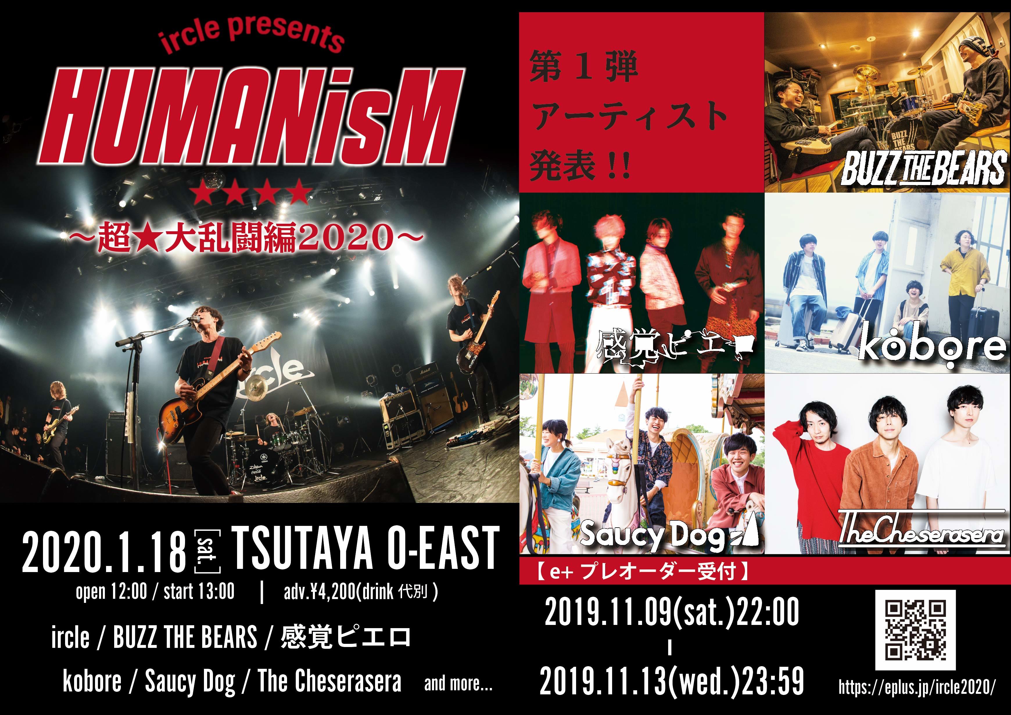 2020年1月18日(土)にTSUTAYA O-EASTにて開催する『ircle presents「HUMANisM 〜超★大乱闘編〜」』の第一弾出演アーティストが発表となった。
