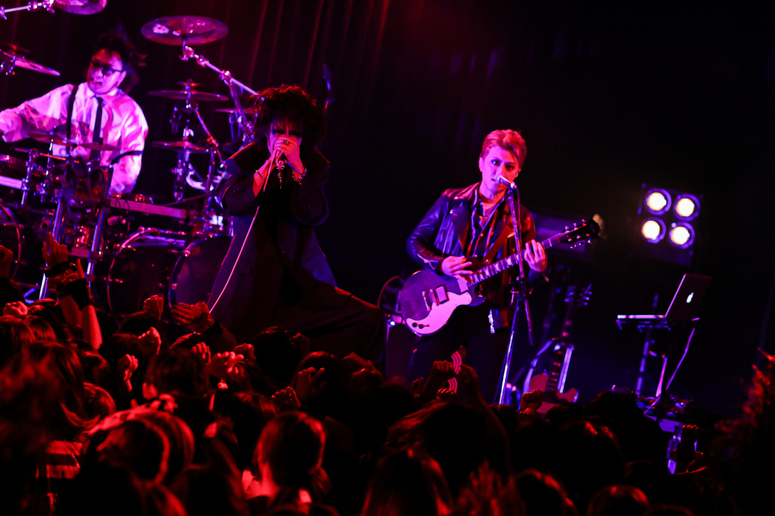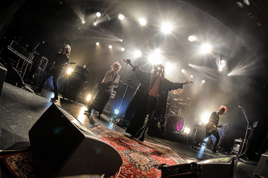 「sweet powder」で場内の熱を再び引き上げ、そのまま「妄想rendez-vous」で輝かしい光景を生む。ラストは今のメリーの代表曲の一つ「最後の晩餐」で切なく烈しくこの夜を締め括った。上半身裸になったガラがステージの上手と下手で豪快に三点倒立を披露し、舞台中央で吠えた頃、時計の針は午後9時半を回っていた。戦友deadmanという最高の客演を迎え、メリーの過去の名曲群の“ノスタルジヰ”にたっぷり浸ると同時に、彼らが未来にどんな新たな名曲を生み出してくれるのか期待が膨らむライブだった。